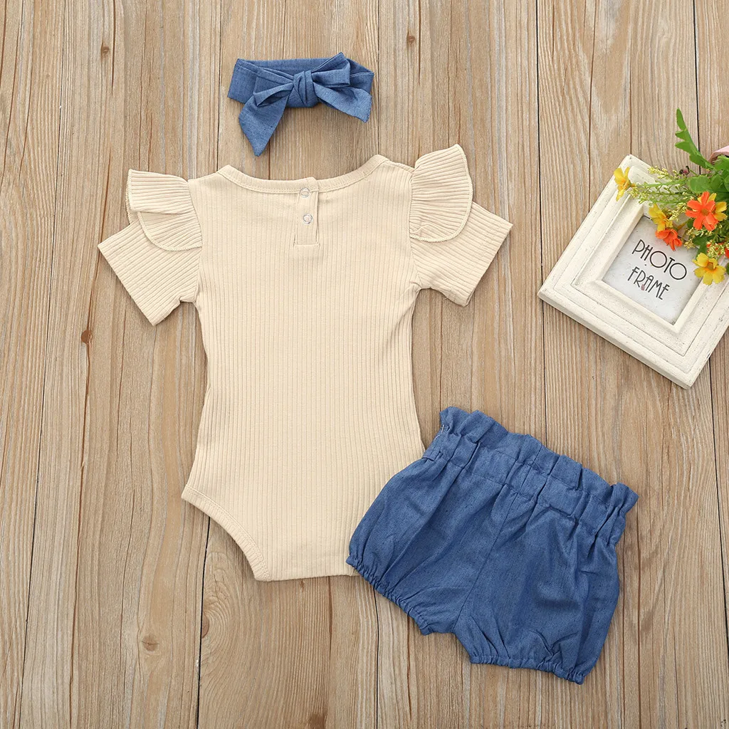 Комплект одежды из 3 предметов для маленьких девочек; комбинезон с бантом; джинсовые шорты