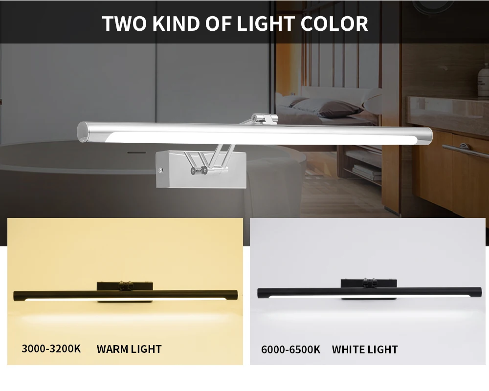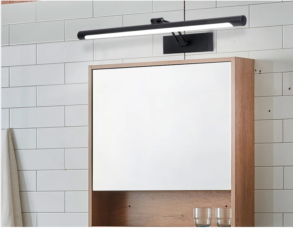 Светодиодный настенный светильник, зеркальный светильник для ванной комнаты, черный, серебристый, 8 Вт, 40 см, 12 Вт, 55 см, переменный ток 90-260 В, водонепроницаемый туалетный светильник, настенные светильники для гостиной Бесплатная доставка