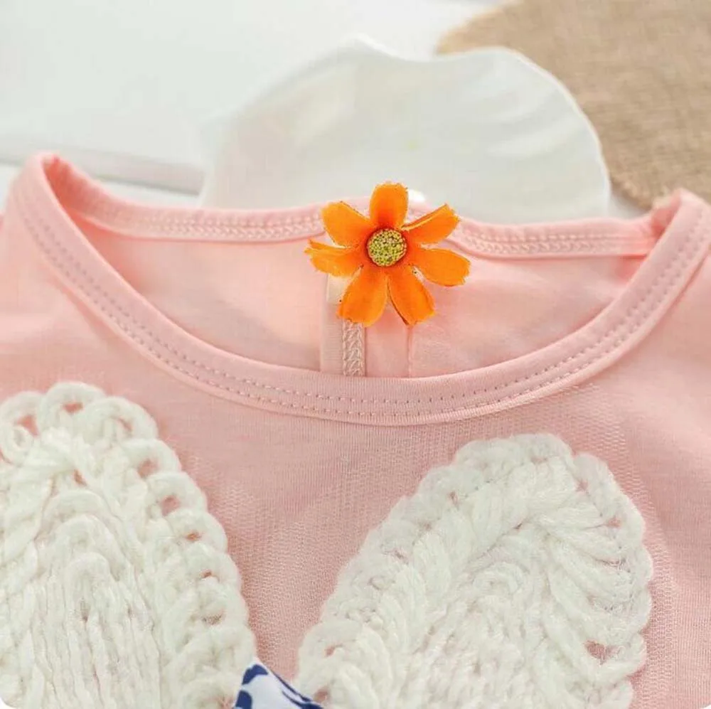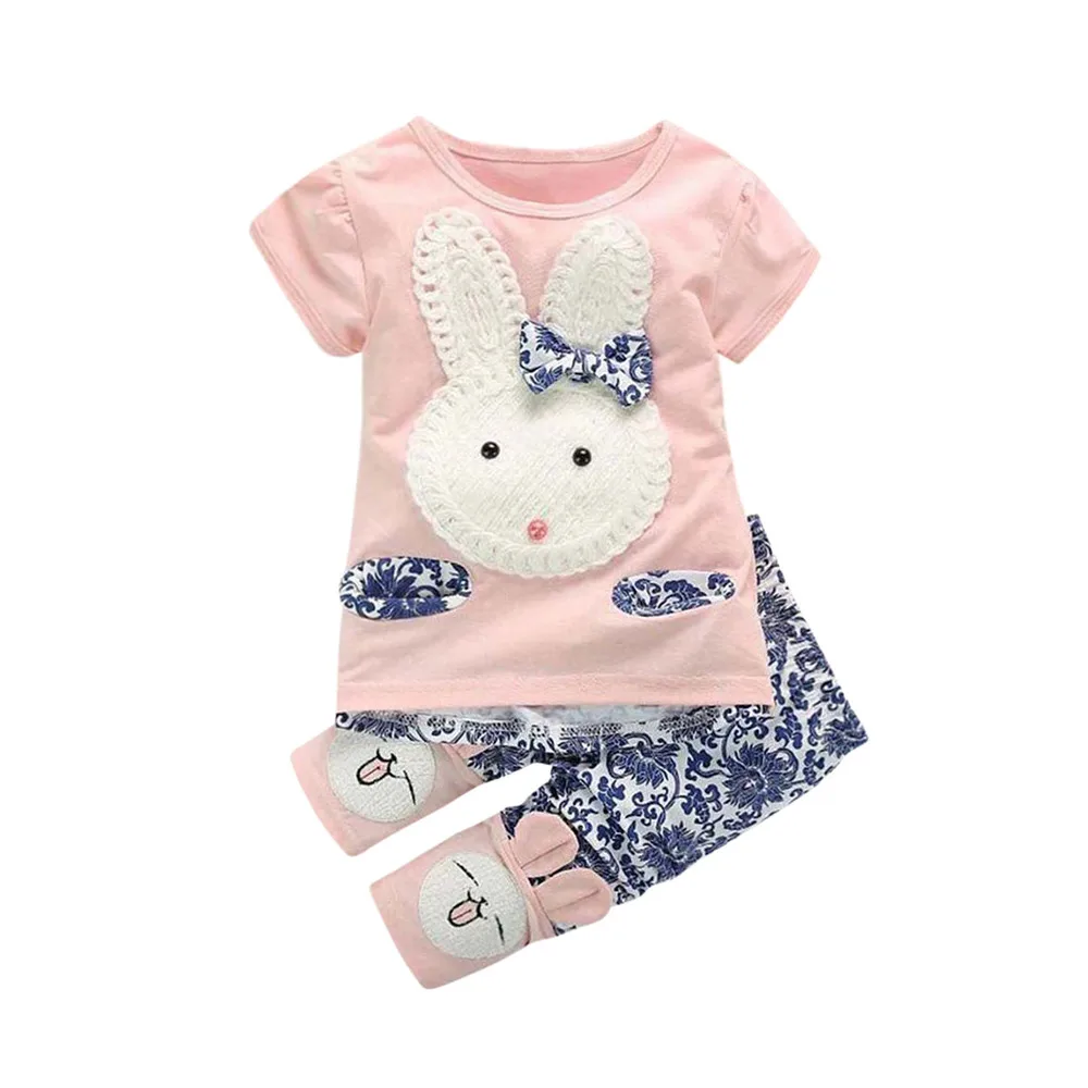 Футболка с короткими рукавами для маленьких девочек Топы + штаны с рисунком кролика Наряд Комплект одежды