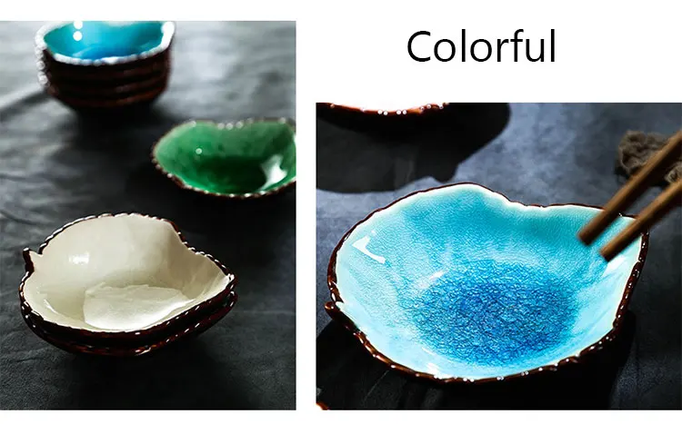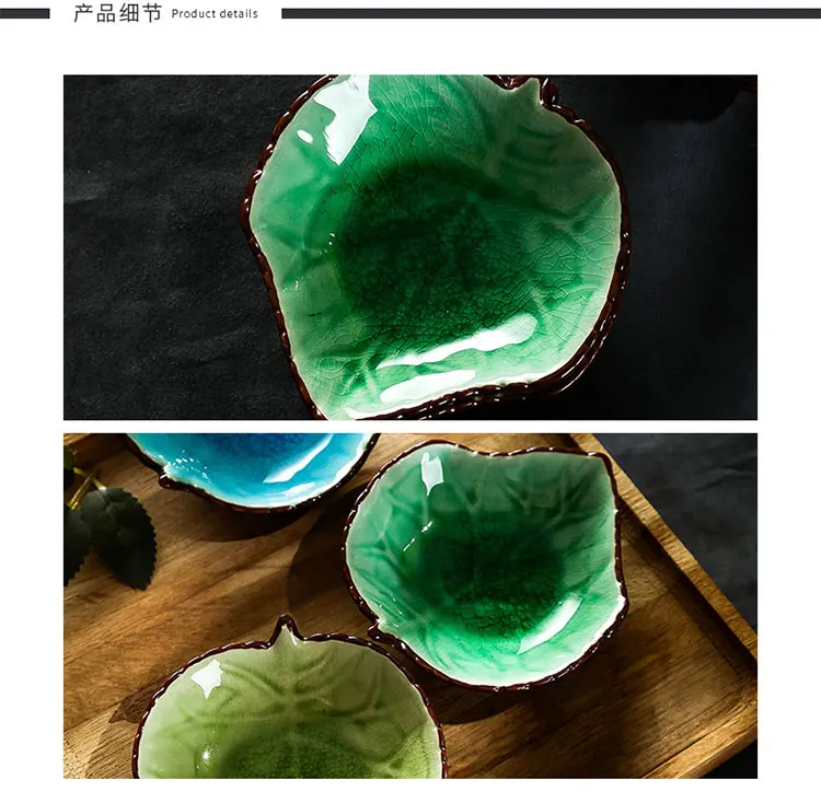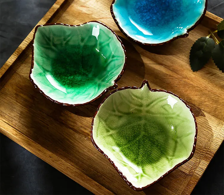Японские трескающие блюдца в форме листа из керамики красочные гладкие поверхности фарфоровые соусы блюдца для домашнего ресторана блюдца