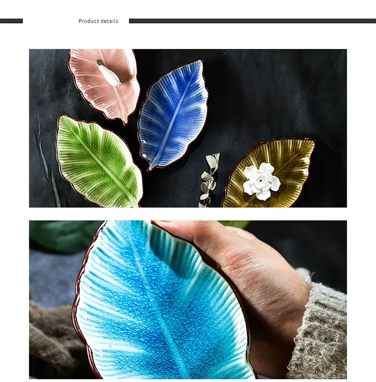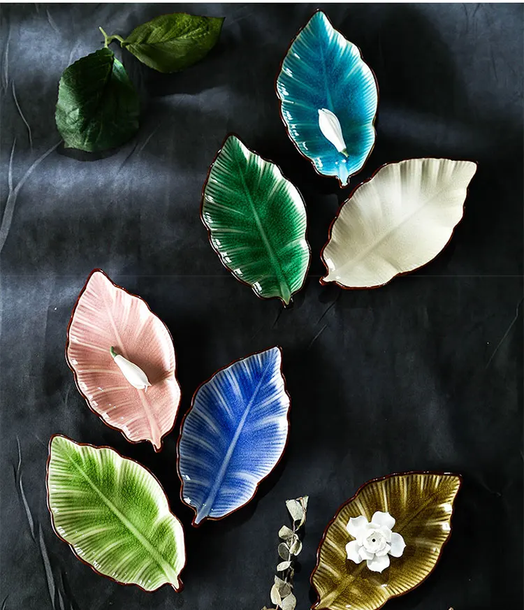 Японский Керамика пластина яркие, в форме листа тарелка ретро Творческий Фарфор суши стейк Тарелка декоративная посуда