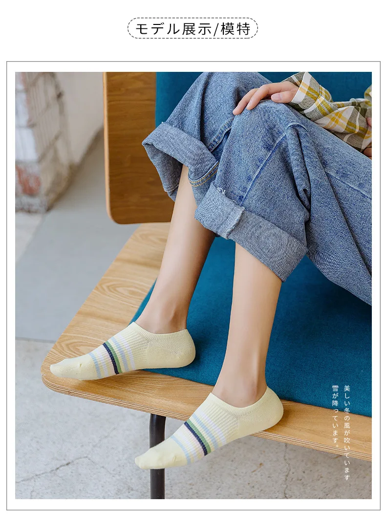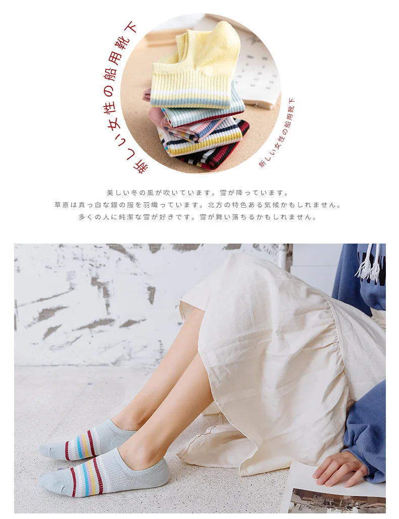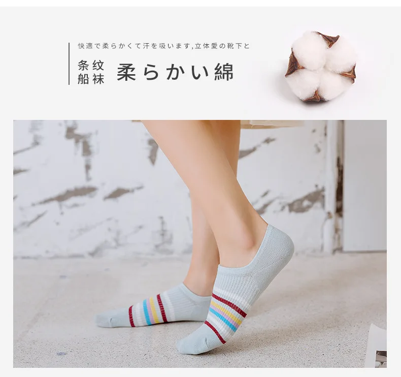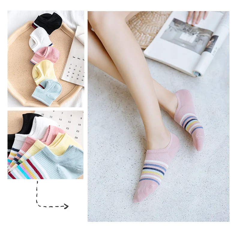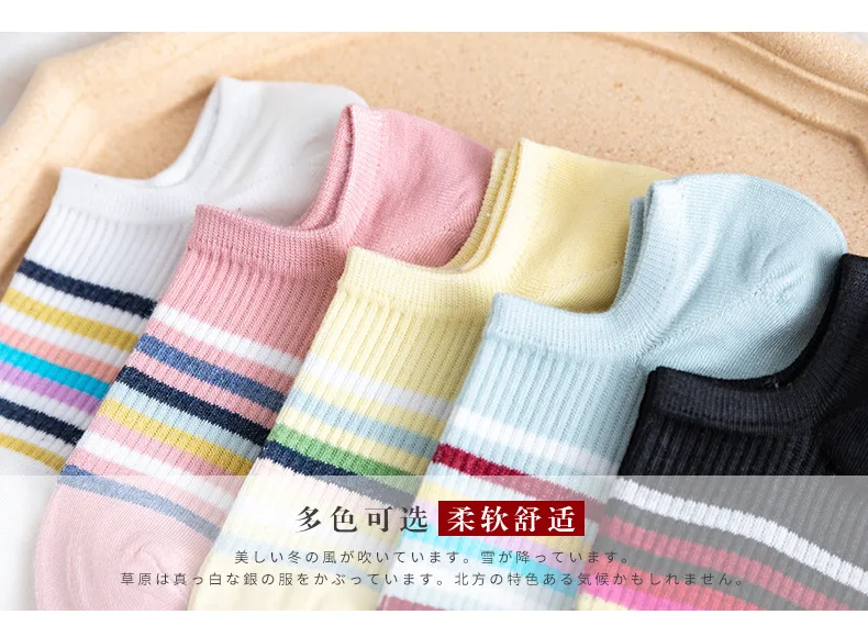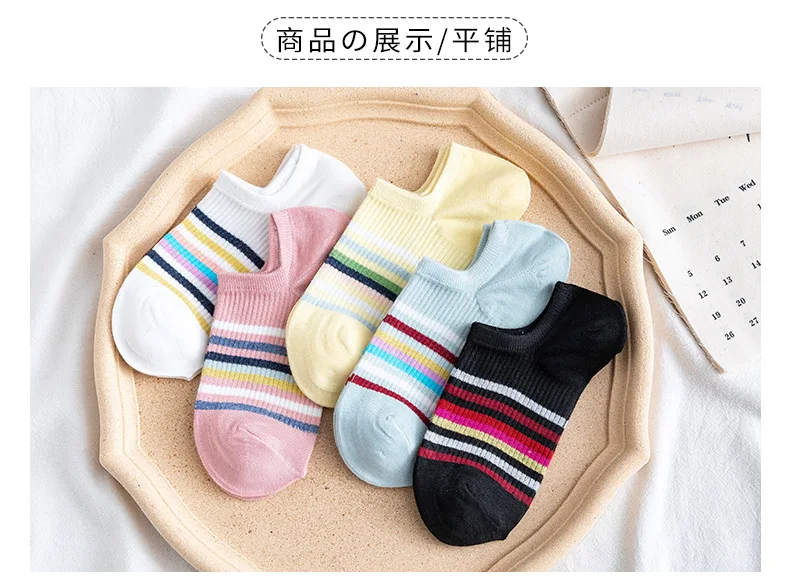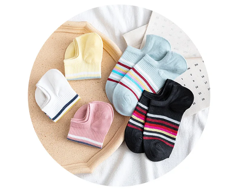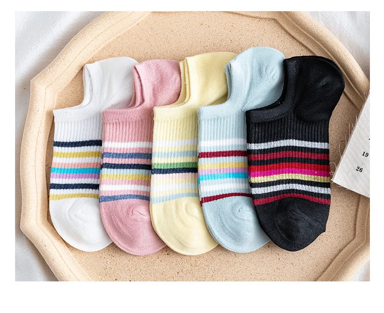 Женские Оригинальные радужные хлопковые полосатые носки, повседневные тонкие лодочкой, удобные дышащие носки
