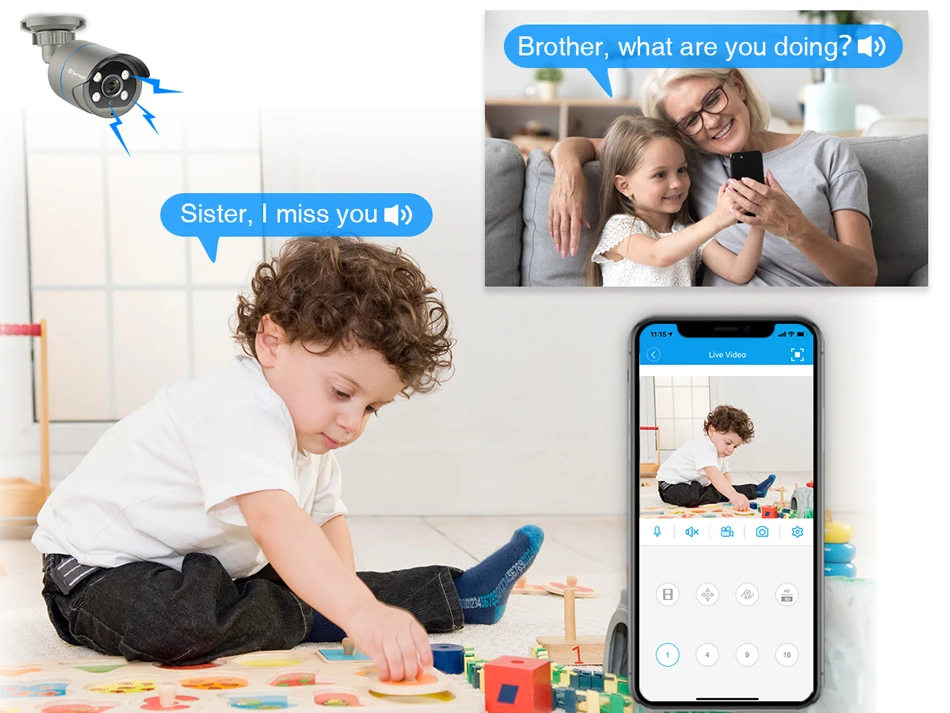 Камера имеет встроенный микрофон и динамик.Никогда не пропустите ни минуты с вашей семьей.