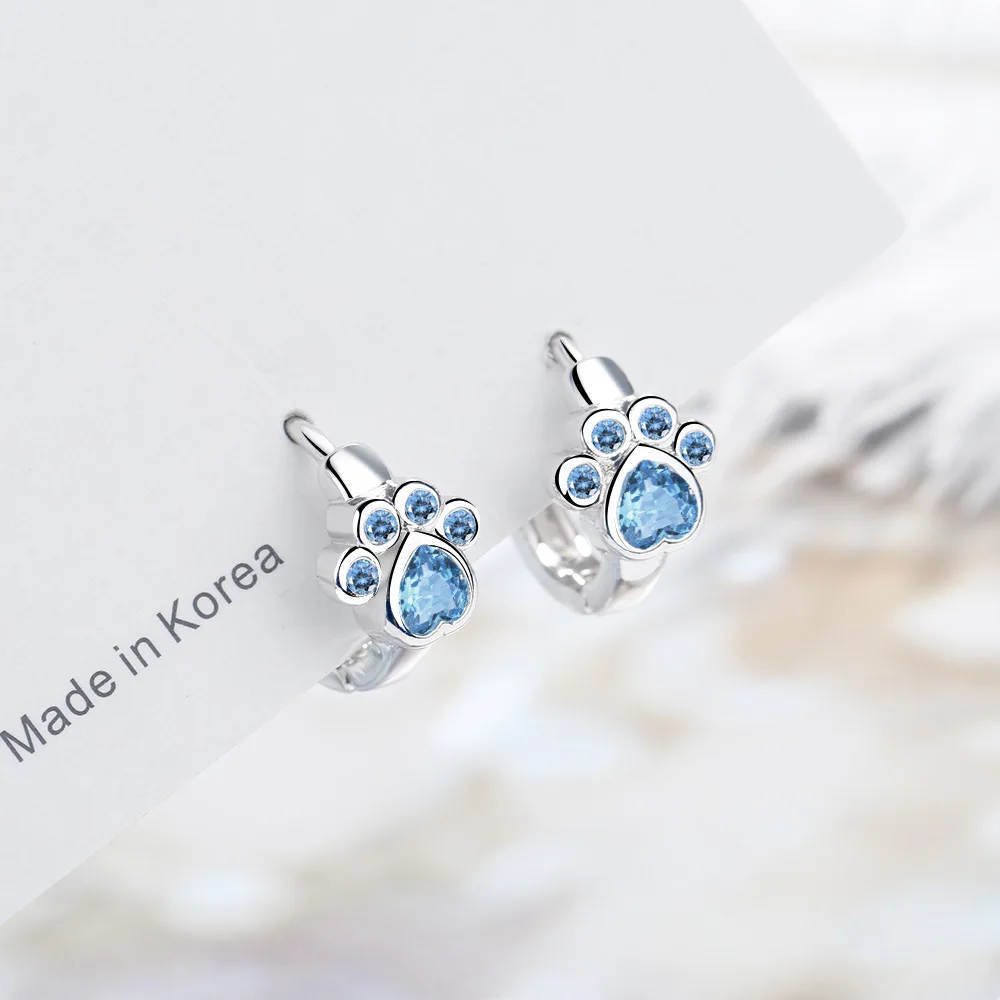 Симпатичные 925 пробы серебро кошка Когте образные ножки принт Форма синий циркон обруч с камнем в виде капель с кристаллами в форме девушка для вечеринки, дня рождения oorbellen pendientes Материал: серебро 925 пробы, кубический цирконий Состояние: 100% новый Случай: вечерние, свадебные, Помолвочные, день рождения, День Святого Валентина, День матери