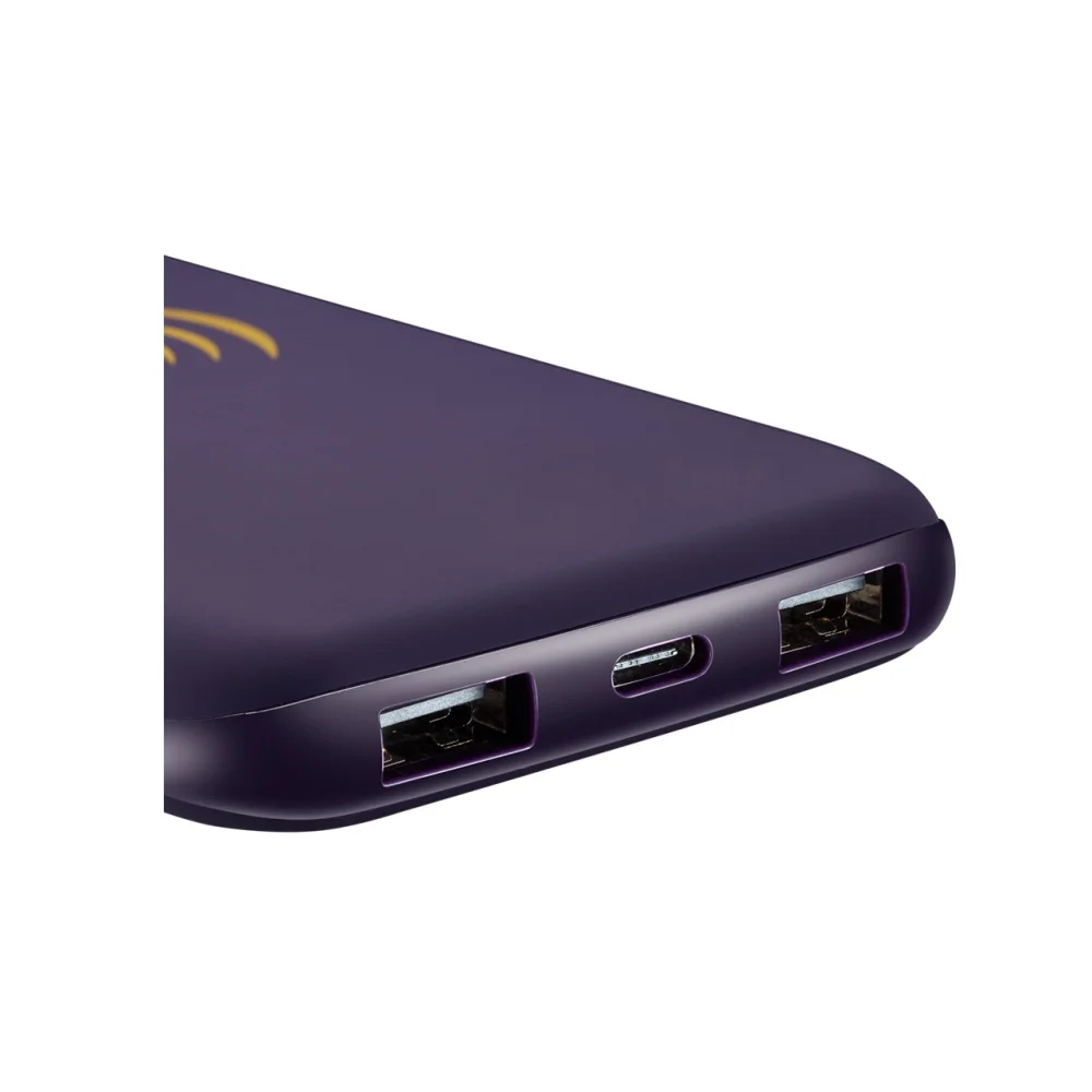 ХАРАКТЕРИСТИКИ Ёмкость батареи 8000 мАч / 3.7В Тип батареи Литий-Полимерная InputMicro-USB/Type-C 5В-2A 2 USB Выхода 5В-2A Wireless 5Вт Время зарядки 5 часов Количество зарядов среднестатистического смартфона 3 Цвет Фиолетовый