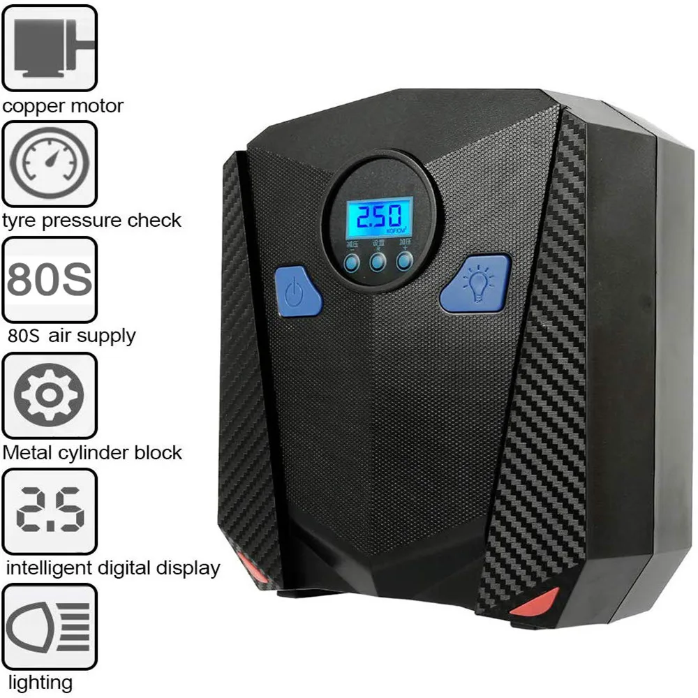 Это портативное Надувное устройство для шин небольшого размера, которое имеет компактную портативную конструкцию, может быть легко помещено в багаж и т. д. очень удобно вынимать для путешествий, использовать его в любое время. Шнуры хранятся в задней части, что экономит больше места. Тип гнезда для сигарет может быть вставлен непосредственно длиной 3 м для облегчения надувания передних и задних шин. Подключите к зарядному кабелю 12 В или другой розетке 12 В; Установите необходимое давление на ЖК-дисплей с подсветкой, микропроцессор контролирует давление в шинах, автоматически останавливаясь при установленном давлении. Воздушный насос для шин имеет большой встроенный съемный цифровой манометр. Датчик проверяет давление шин на все ваши транспортные средства быстро и точно. Многофункциональный Электрический шинный насос с цифровым манометром, цифровой шинный насос оснащен ярким долговечным светодиодный светильник в ночное время. Он имеет 4 единицы дисплея: PSI, KPA, BAR, KG/CM Широко используемый воздушный насос автоматически надувает шины для автомобилей, велосипедов, мотоциклов, RV, SUV, ATV и грузовиков. Также в комплект входит спортивное оборудование и надувные адаптеры. Также может использоваться для надувания воздушной подушки, лодки, воздушной подушки, баскетбола, волейбола и других мячей с силой