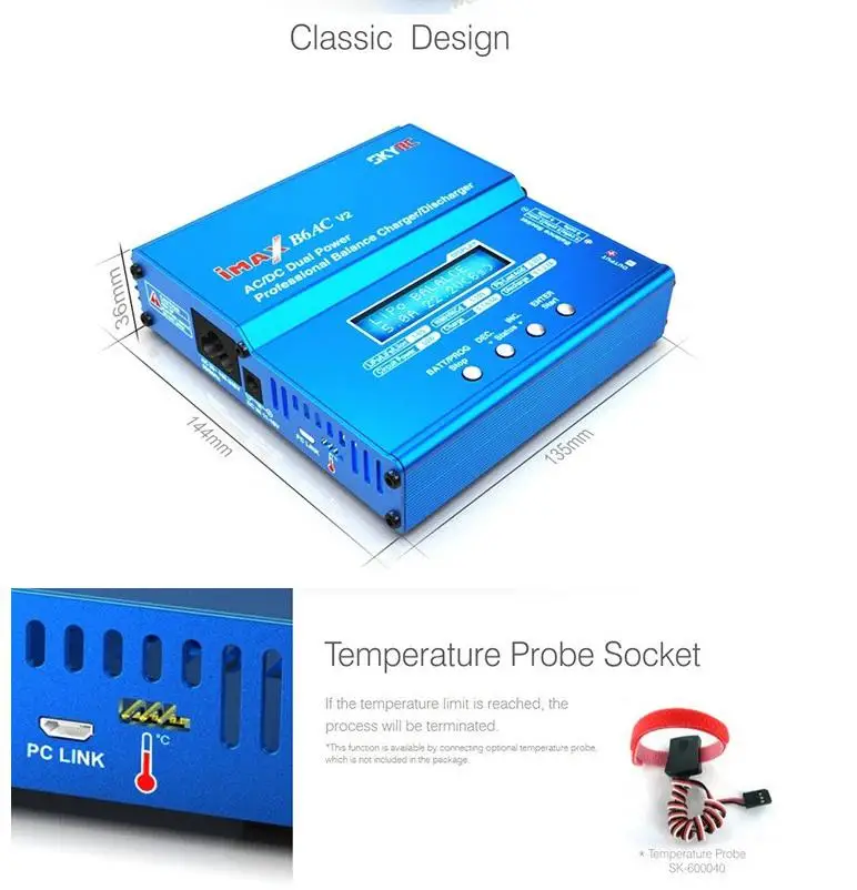 Этот товар предназначен для быстрого зарядного устройства/разрядки для всех видов батарей RC hobby, со встроенным балансиром для литий-полимерных батарей.