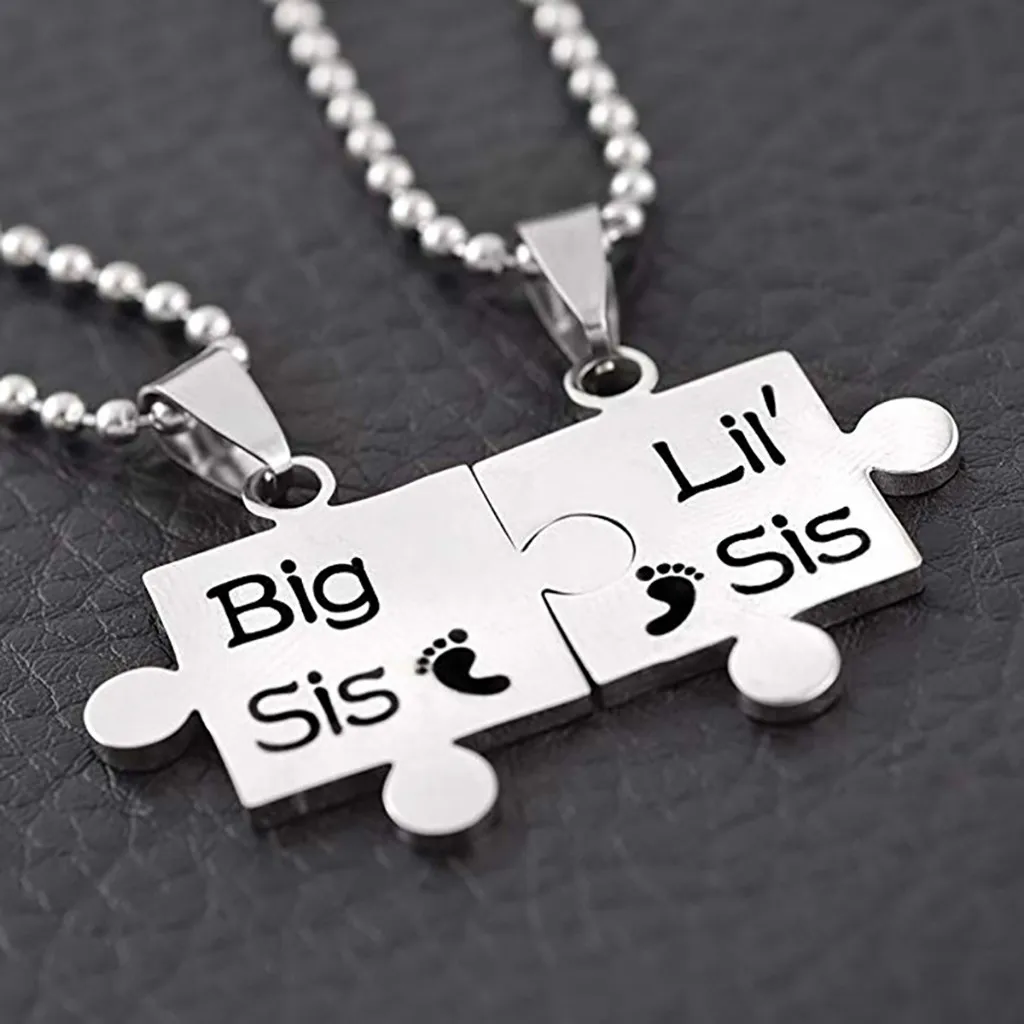 2pcs Creative Lil Sis Big Sis Simple Complementary Sister Pendant Necklace Set
