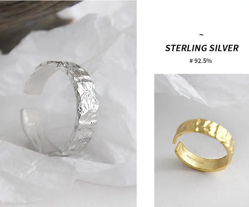 Открытое кольцо из серебра S925 пробы с неровной поверхностью из золота и серебра с узором из оловянной фольги Женское кольцо Серебряные женские украшения