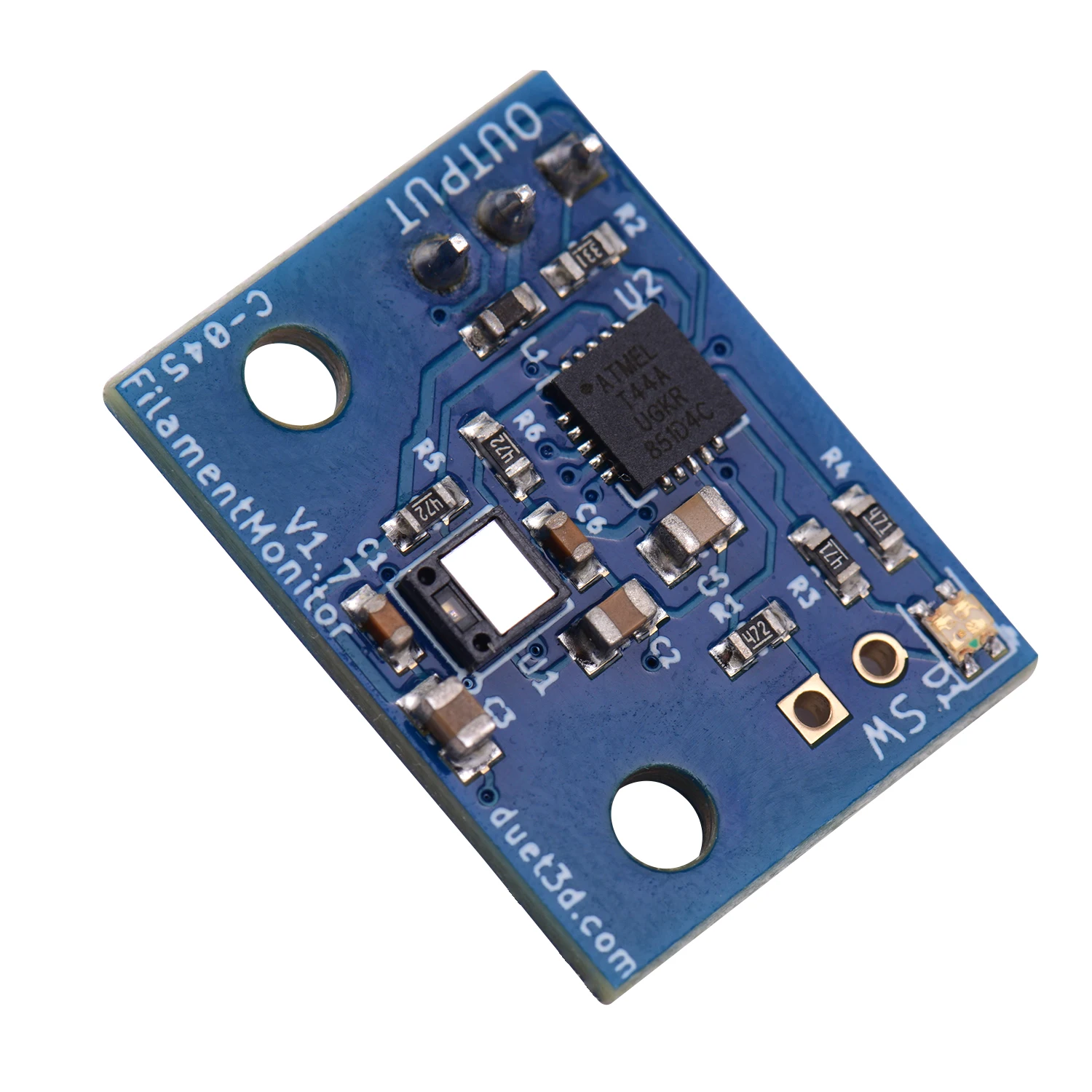 Монитор накаливания Duet3D использует ИК-оптический детектор движения для обнаружения движения нити. Обнаруженное движение передается на Duet 2 , Ethernet или Maestro, который использует указанное движение, чтобы определить, закончилось ли нить, побитая или была заземлена в экструдере. Он доступен для 1,75 мм диаметр нити только.