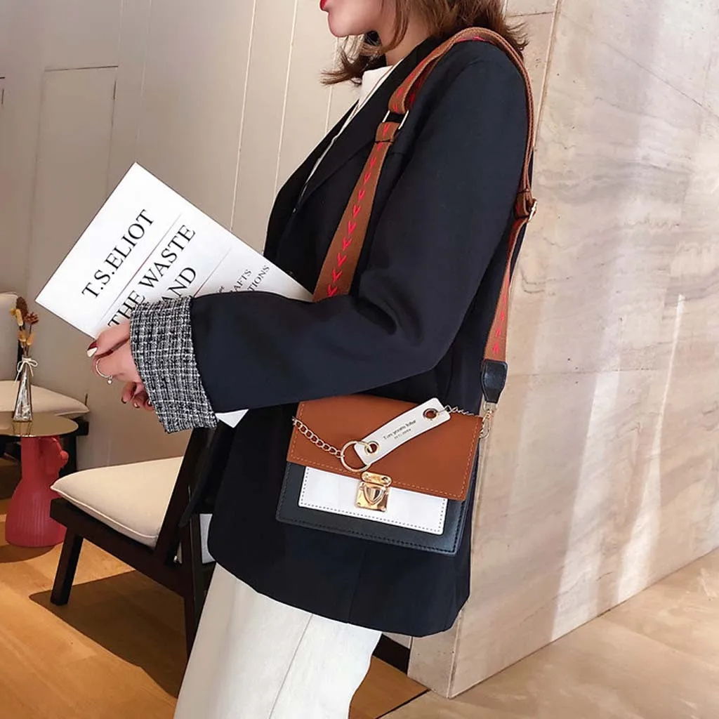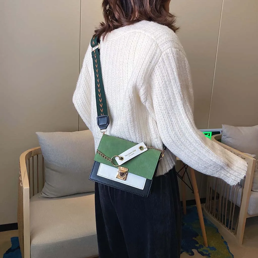 Женская матовая контрастная цветная сумка через плечо модная маленькая квадратная сумка