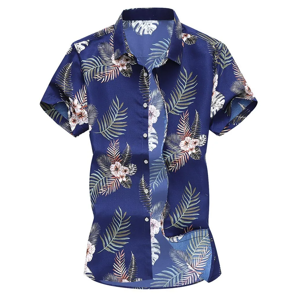 Модная мужская Тонкая свободная Гавайская футболка с коротким рукавом и отложным воротником