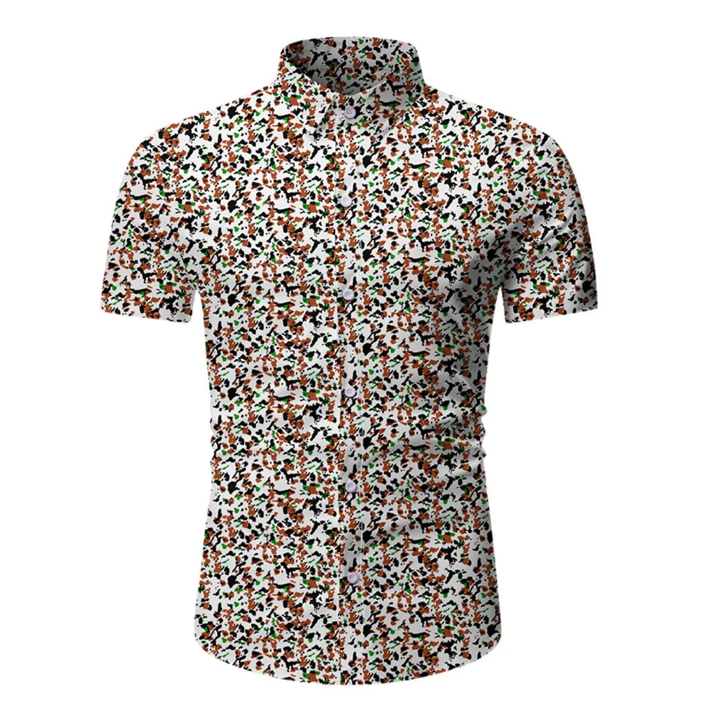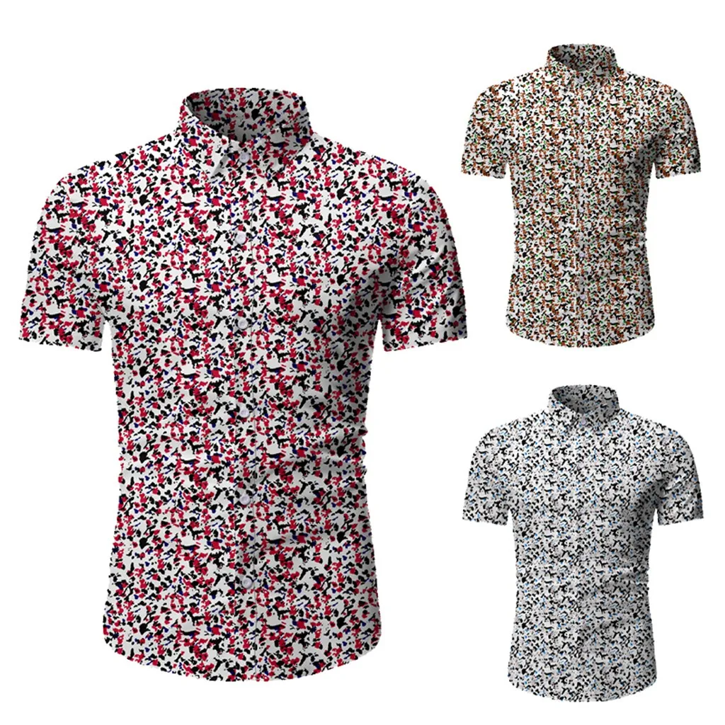 Мужская Повседневная летняя Гавайская футболка на пуговицах с принтом и коротким рукавом, топ, блузка