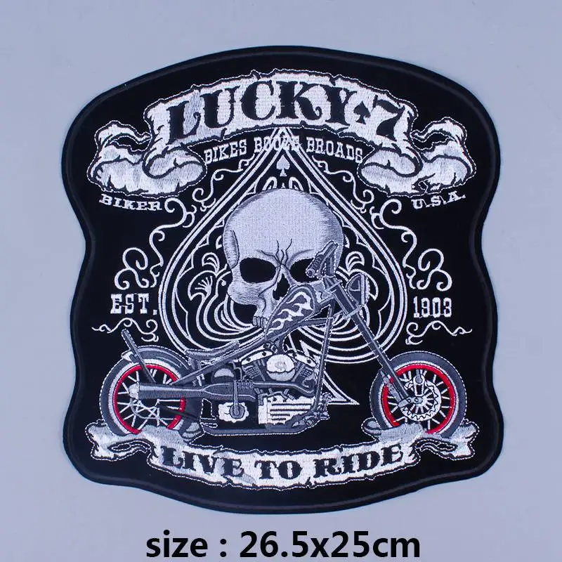 Изящные байкерские мотоциклетные нашивки с вышивкой для одежды большие значки с черепом большой Байкерский шитье/железные нашивки на одежде в полоску