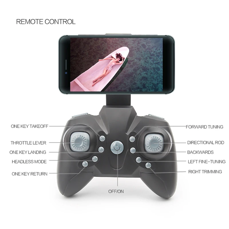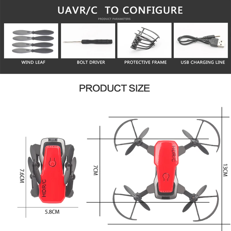 D2 Дрон * 1 3.7V450mAh аккумулятор * 1 (Дрон поставляется с одной батареей) Защитная крышка * 4 Запасные крыло * 4 Usb-кабель для зарядки * 1 Пульт дистанционного управления * 1 (без винтов) Подставка для телефона * 1 (за исключением камеры)