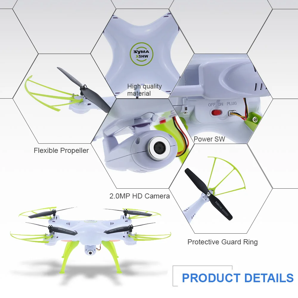 Этот оригинальный SYMA X5HW имеет инновационные технологии полета и является машиной, которую вы можете летать практически в любом месте. Благодаря своей точной функции управления, 3d-флипу, безголовому режиму, он может сделать профессиональный из зеленой руки. Кроме того, Wi-Fi в режиме реального времени FPV приносит мир перед вами. Все, что вам нужно сделать, это come and take it дома!
