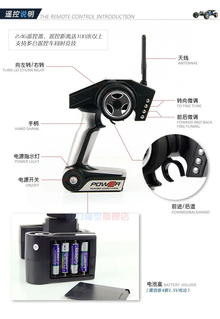 Технические характеристики:Транспортное средство параметры размера-Длина автомобиля: 348 мм-Ширина транспортного средства: 230 мм-Размеры: 115 мм-Колесная база: 250 мм-Протектор: 170 мм-Диаметр шин: 76 мм-30 мм широкое переднее колесо-Ширина заднего колеса: 36 мм Транспортные средства для настройки-Дистанционное управление автомобилем и прием беспроводной связи, 2,4G две настройки-В Натуральную Величину для различных световых эффектов на радиоуправлении-Мотор использует 380-Литий-железо батареи: 7,4 v 1500mah-Вся Автомобильная Инженерная пластмасса Производительности транспортного средства-Скорость транспортного средства 40 км/ч-Место работы транспортного средства на полу, песке, траве-Непрерывное манипулирование временем в течение более десяти минут-Аксессуары могут быть модернизированы-независимая подвеска на четыре колесаРезиновые шины-Управляемый подход к использованию двух дисков-Дифференциал шестерни заднего колеса-Металлическая чашка с контактами-Взрывозащищенное покрытие автомобиля, ПВХ-Лучшие Rc игрушки в подарок Посылка включает в себя:1 x Rc автомобиль L959(Не в розничной коробке) 1 х пульт дистанционного управления (1 шт.);Зарядное устройство (вилка европейского стандарта) 1 x Крест 1 x Батарея 1 x Руководство пользователя на английском языке