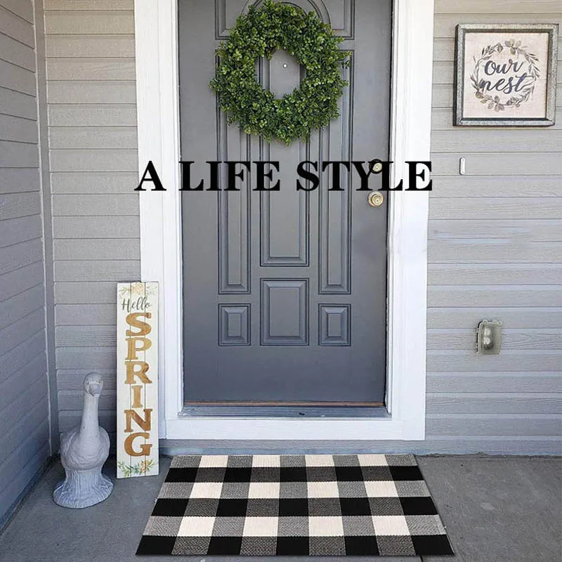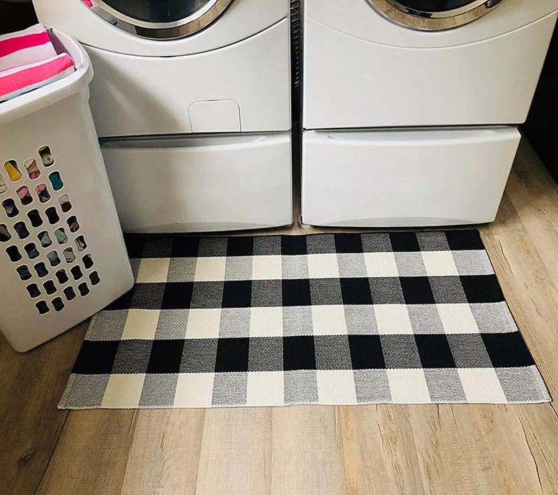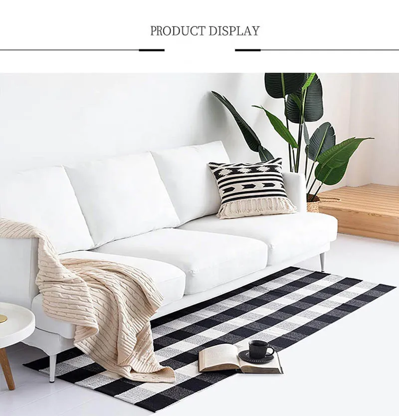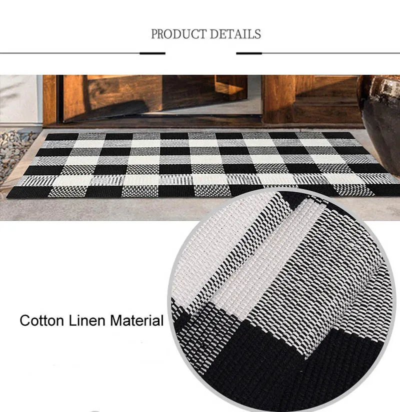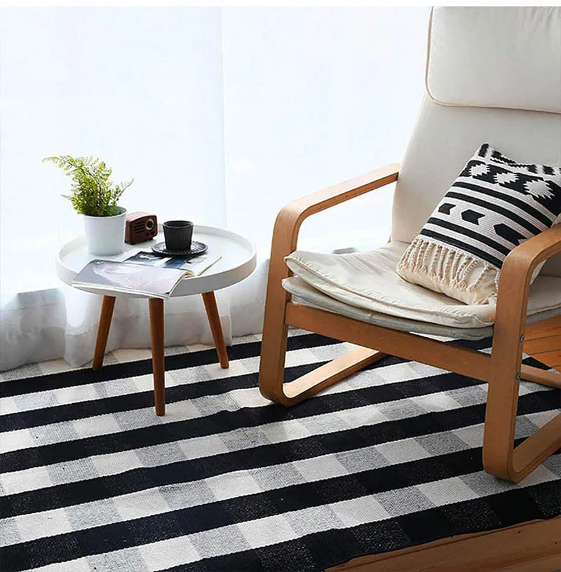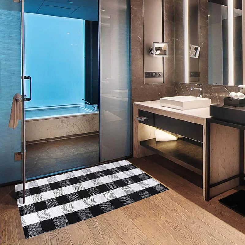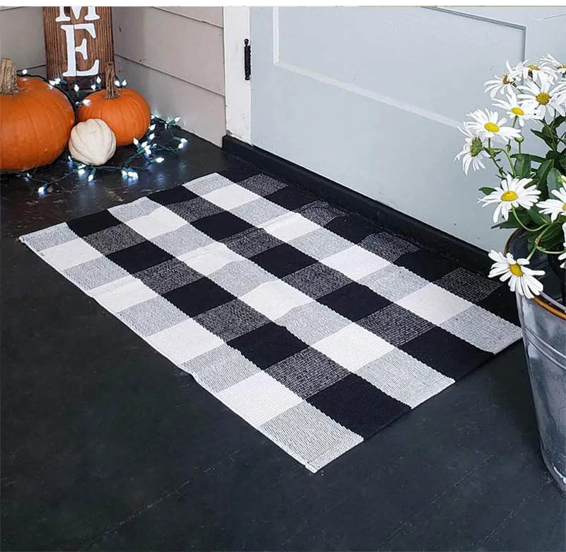 Хлопковый льняной ковер для гостиной, черно-белые клетчатые ковры, декор для детской комнаты, входная дверь, коврик для прикроватной кровати, коврик для пола