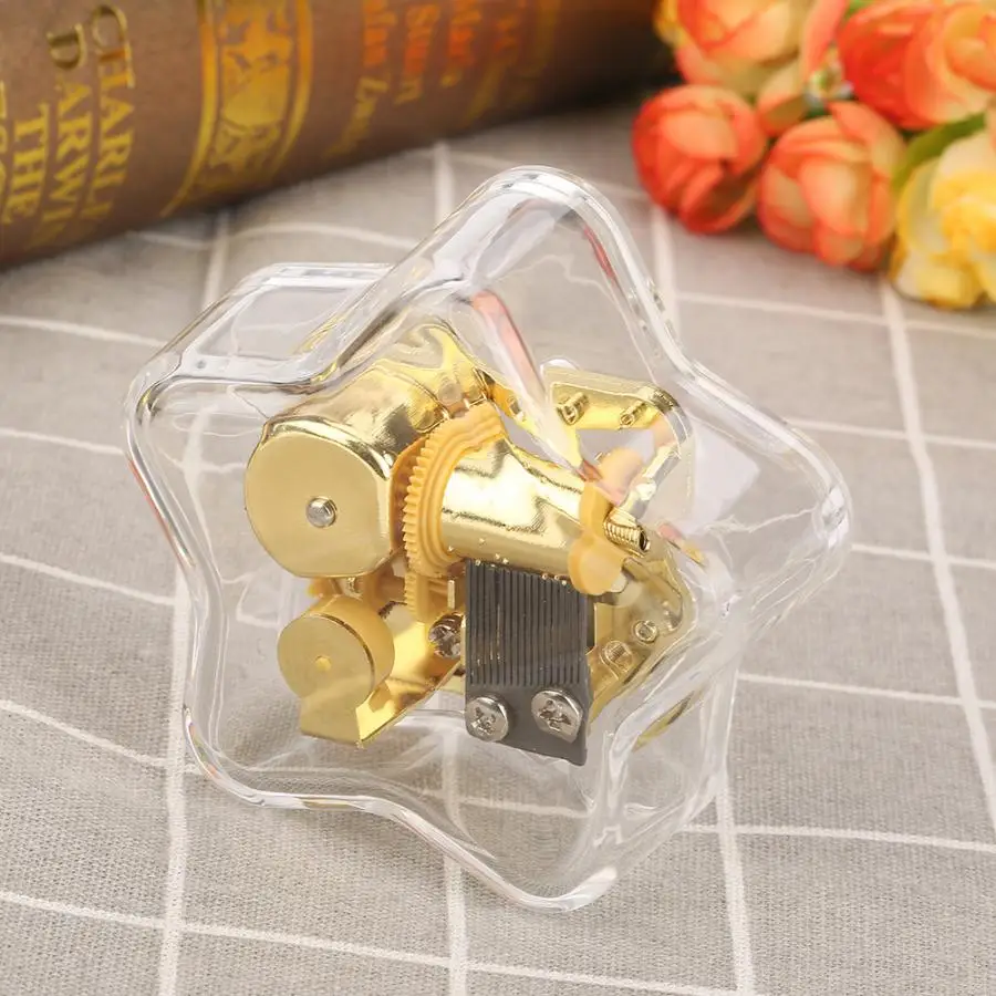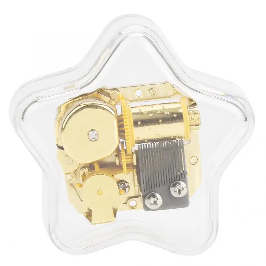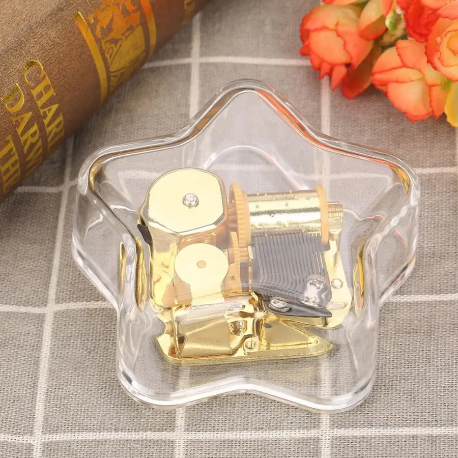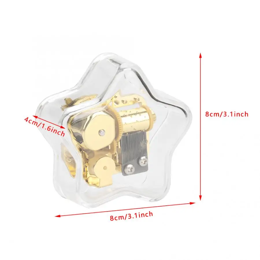 Изготовлен из высококачественного акрилового материала, деликатный и прочный в использовании. Хорошо сделанная акриловая музыкальная шкатулка, форма пентаграммы, элегантная и изысканная. Это механическая музыкальная шкатулка, которая не требует аккумулятора для питания. Намотайте часовой механизм, а затем вы сможете наслаждаться красивой музыкой. Отличное качество изготовления, отличный подарок на день рождения, Рождество и День святого Валентина.2. Мониторы не калибруются так же, цвет товара может немного отличаться от реального объекта. Пожалуйста, выберите настоящий стандарт.