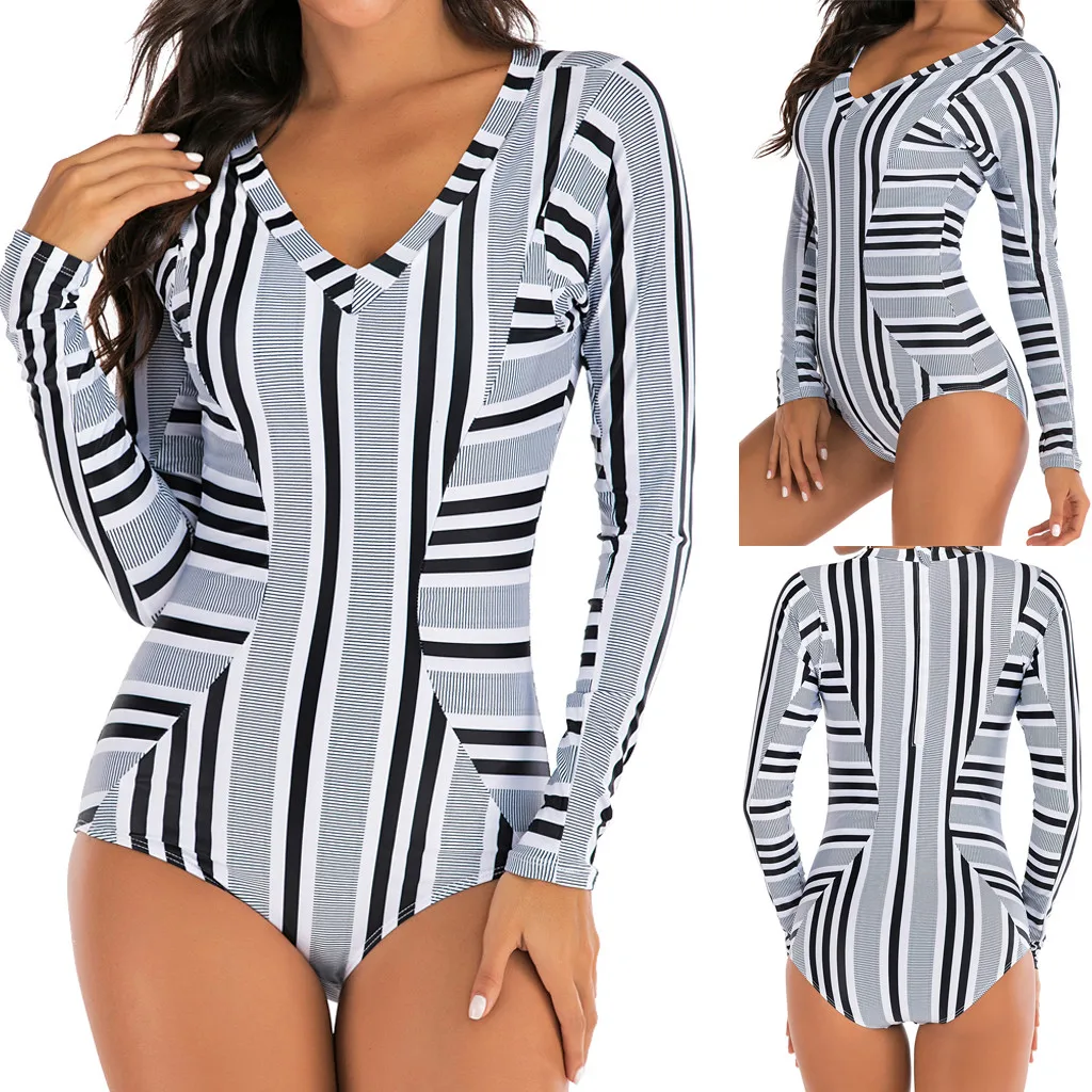 Женский модный костюм с v-образным вырезом и принтом в полоску для дайвинга и серфинга, пляжный костюм