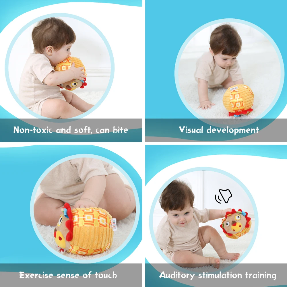 Мягкая безопасная ткань и наполнитель, яркий цвет, форма мультяшного животного, идеальная игрушка, чтобы сопровождать ребенка ползанием или ходьбой.