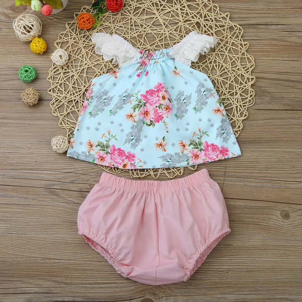4. Комплект для маленьких девочек: кружевной топ с цветочным рисунком + шортыОдежда, моднаяИон и обрезан на вашем маленьком ребенке