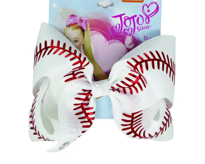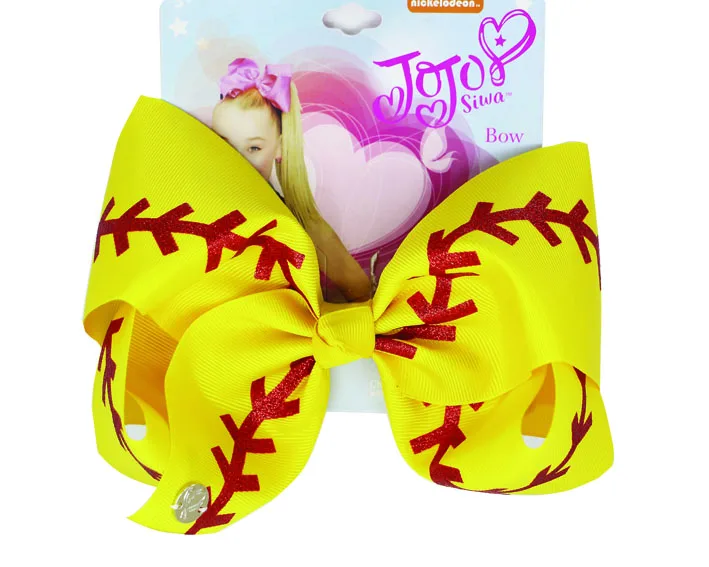 8 ''бантик для волос большой Софтбол команда бейсбол развеселить банты блестящие стежки с держателями для волос для девочек Черлидинга