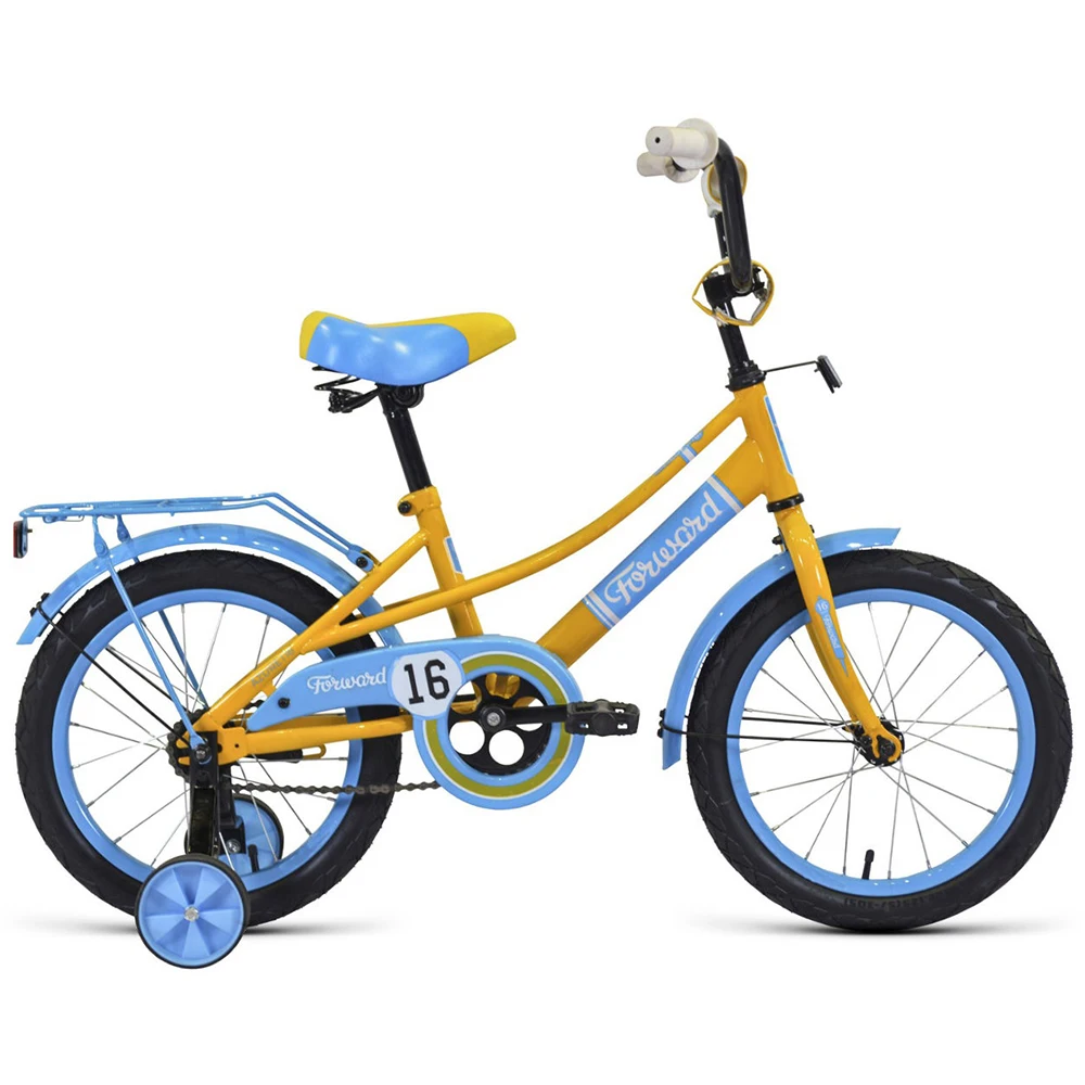 Велосипед, предназначенный для детей в возрасте от трех до шести лет, без переключения передач. Технические особенности: стальная рама Hi-Ten, жесткая стальная вилка, одинарные обода FWD Single Wall, ножные педальные тормоза, защита цепи, съемные боковые колеса, стальные крылья, багажник, мягкая накладка на руле, звонок. Подходит для обучения и легких прогулок. Диаметр колес - 16 дюймов. Вес - 11,1 кг.