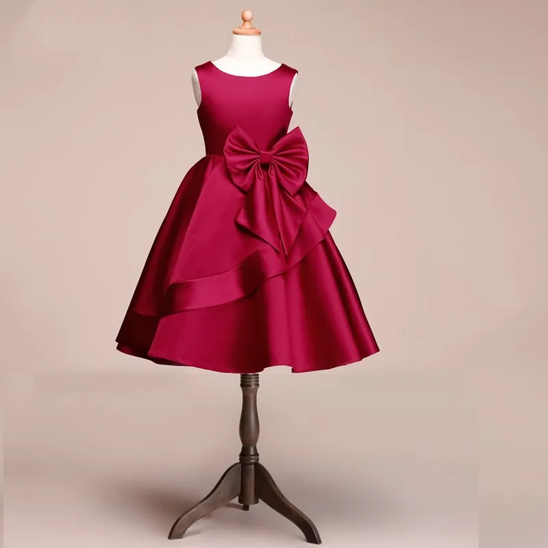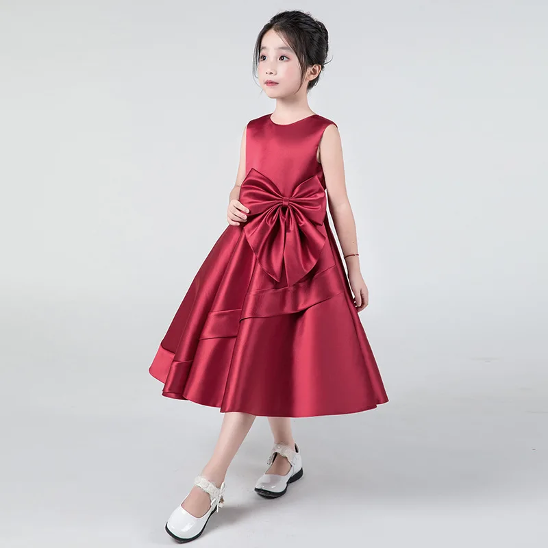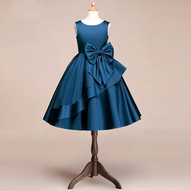 2020 атласное платье трапециевидной формы с цветочным узором для девочек; Романтическое свадебное платье с бантом; Вечернее платье принцессы для девочек; Бальное платье; Детское платье для первого причастия