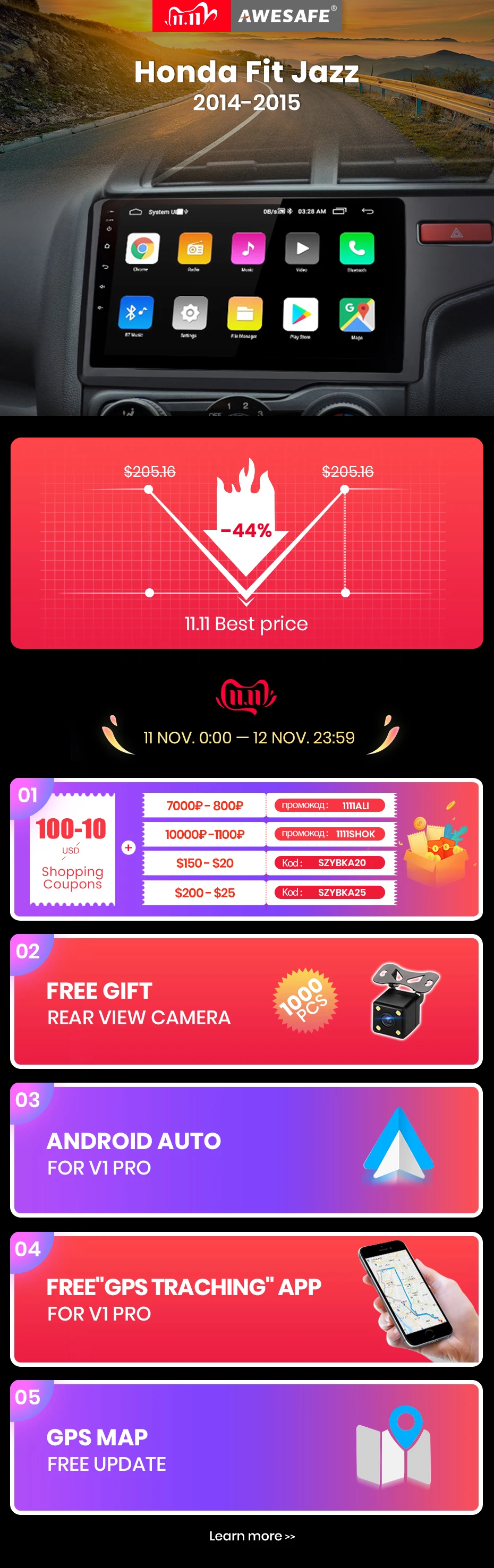 AWESAFE для HONDA FIT JAZZ 2014 2015 функция