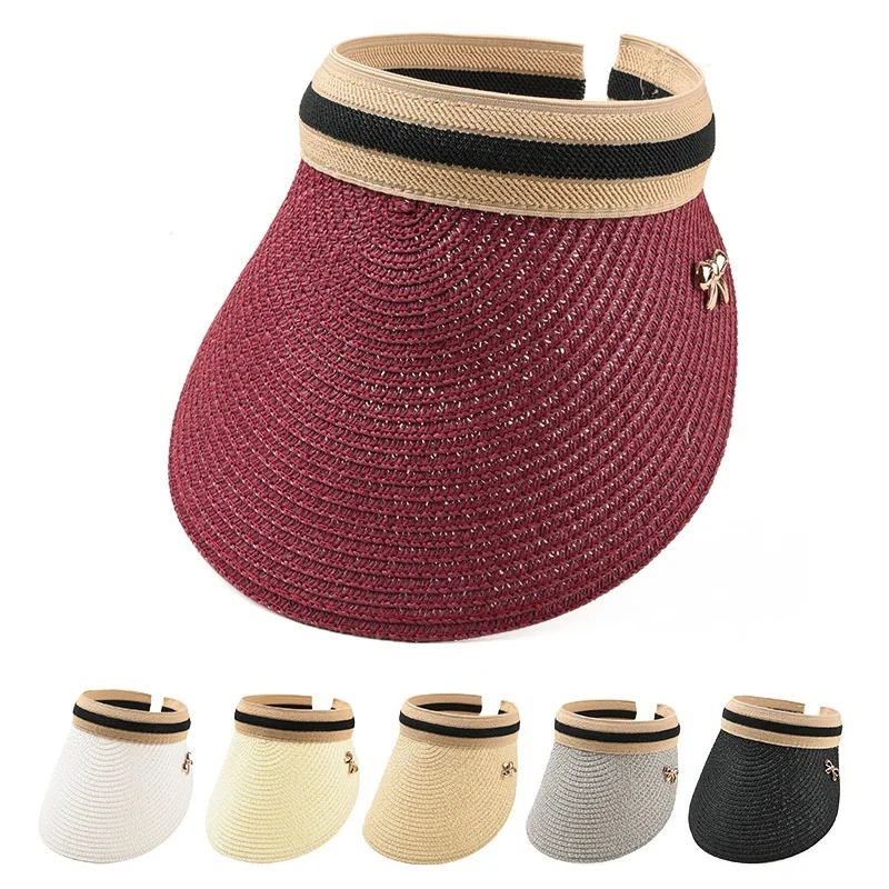 Название:Летняя женская повседневная Кепка с солнцезащитным козырьком для девушек, Пляжная Солнцезащитная шляпа, новинка, праздничная дышащая пустая соломенная шляпа с топлесс