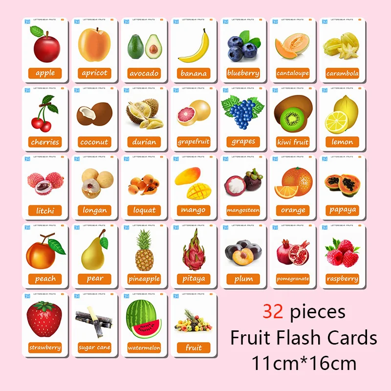 32 шт., Монтессори, фруктовая карта, английские Обучающие флеш-карты, Детские Ранние развивающие игрушки, детский сад, Учительская помощь