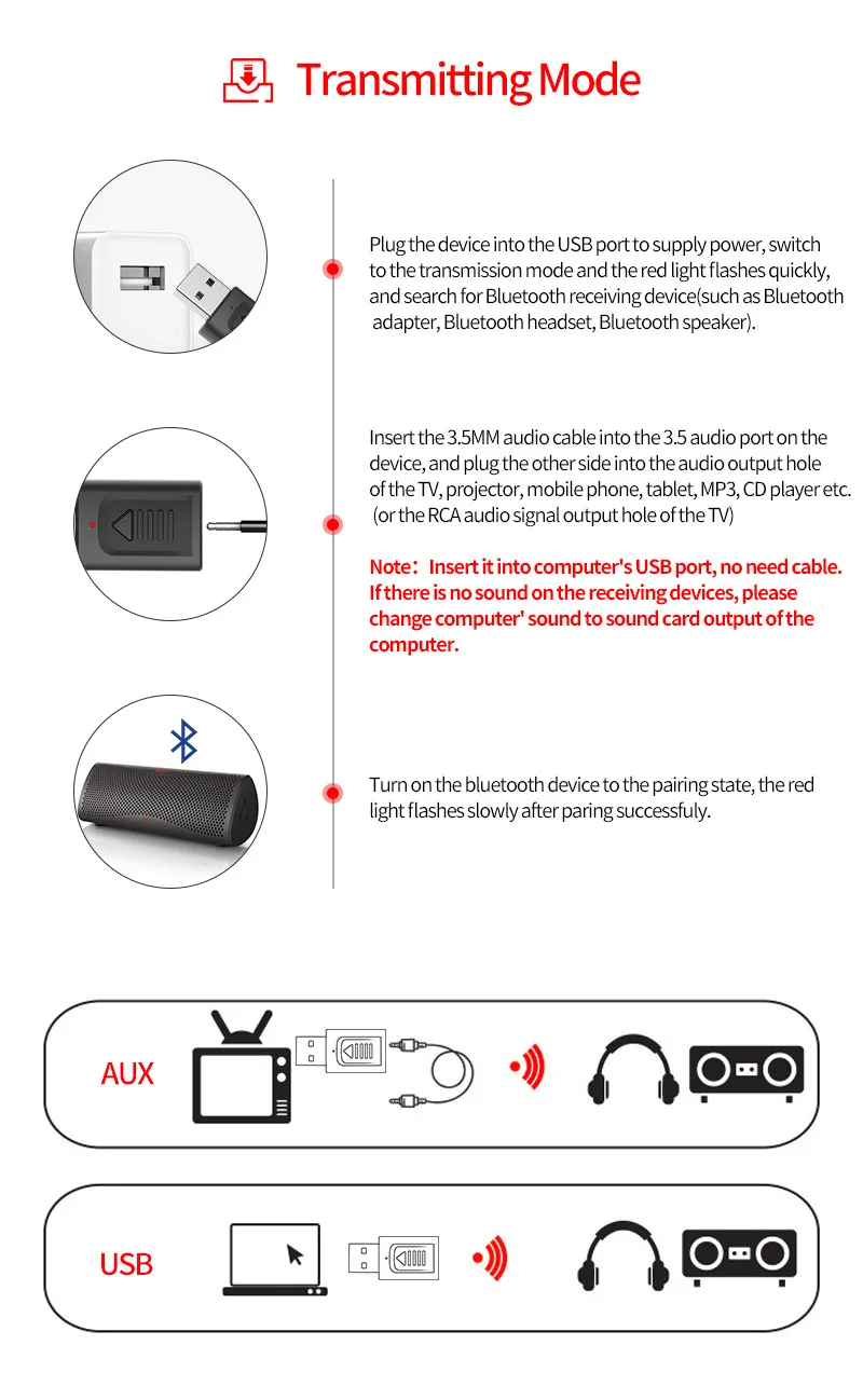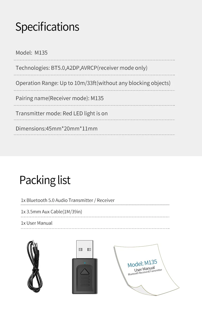 1x Bluetooth 5,0 аудио передатчик/приемник