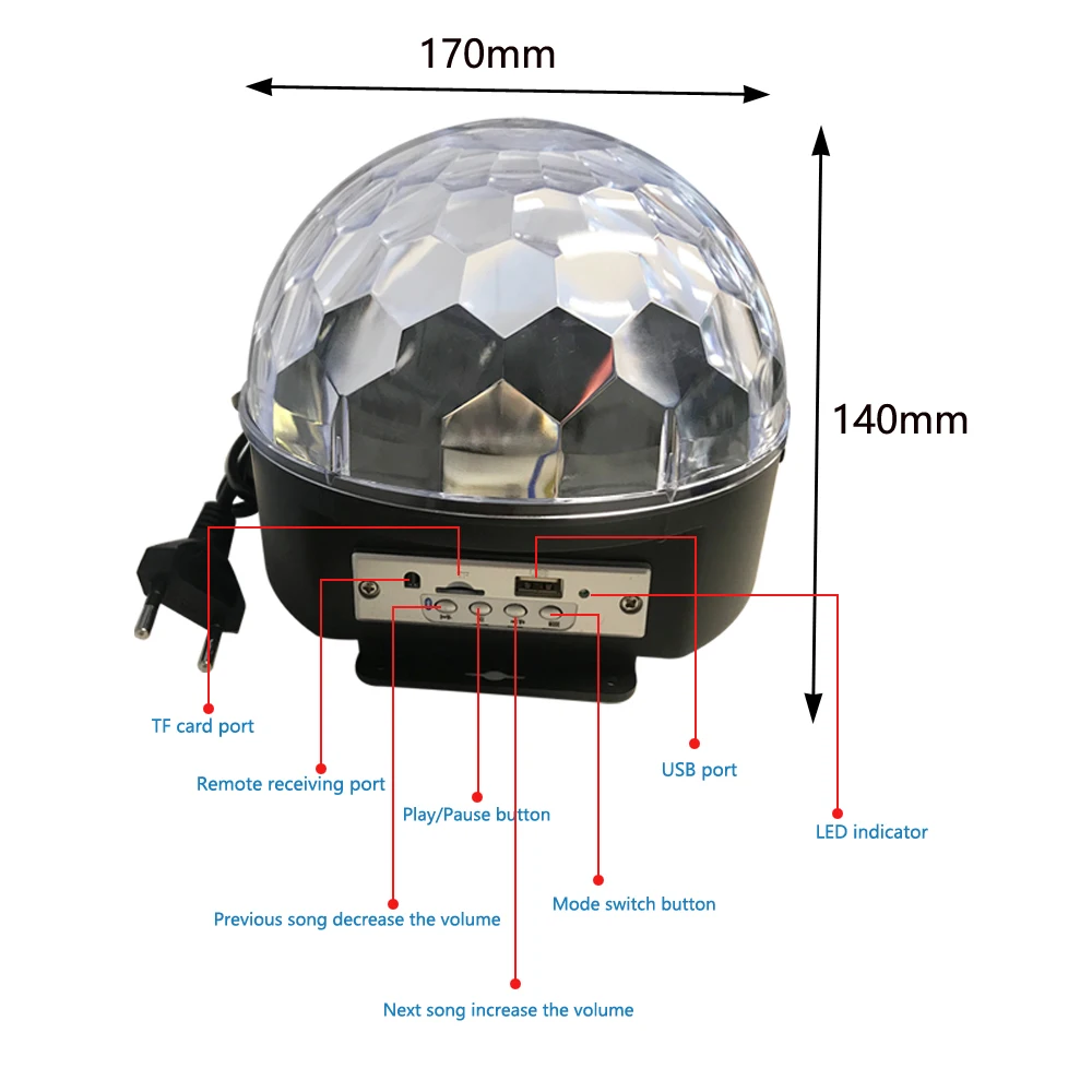 Описание: Это новый хрустальный магический шар, и его новые световые эффекты, как показано на фотографиях Его световое пятно на стене, эффект любит стеклянный шар, очень яркий и мощный Стробоскопические эффекты красный, зеленый, синий, белый, оранжевый и розовый шесть цветов изменения Высокая яркость, красочный и романтический эффект освещения Длительный срок службы, Отличная стабильность Маленький и изысканный внешний вид, удобный в установке Подходит для дискотек, баров, пабов, клубов, катков на роликах, КТВ, вечеринок, праздников, фестивалей, магазинов, парков и других назначенных мест. Спецификация: Цвет освещения: RGB Материал: ПВХ оболочка + прозрачный Кристальный чехол Режим освещения: Голосовое управление, автоматическое освещение и функция MP3 Угол луча: 120 ° Рабочее напряжение: 110-220 В переменного тока Штепсельная Вилка: штепсельная вилка европейского стандарта Размер: 14x17 см В комплект входит: 1 x MP3 хрустальный магический шар 1 x пульт дистанционного управления (батарея не входит в комплект) 1 usb-диск Примечания: Из-за разницы между различными мониторами изображения могут не отражать фактический цвет изделия. Сравните размеры деталей с вашими, пожалуйста, учитывайте погрешность в 1-3 см из-за ручного измерения. Пожалуйста, оставьте сообщение, прежде чем вы оставите плохой отзыв, если продукты имеют некоторые проблемы. Спасибо за понимание