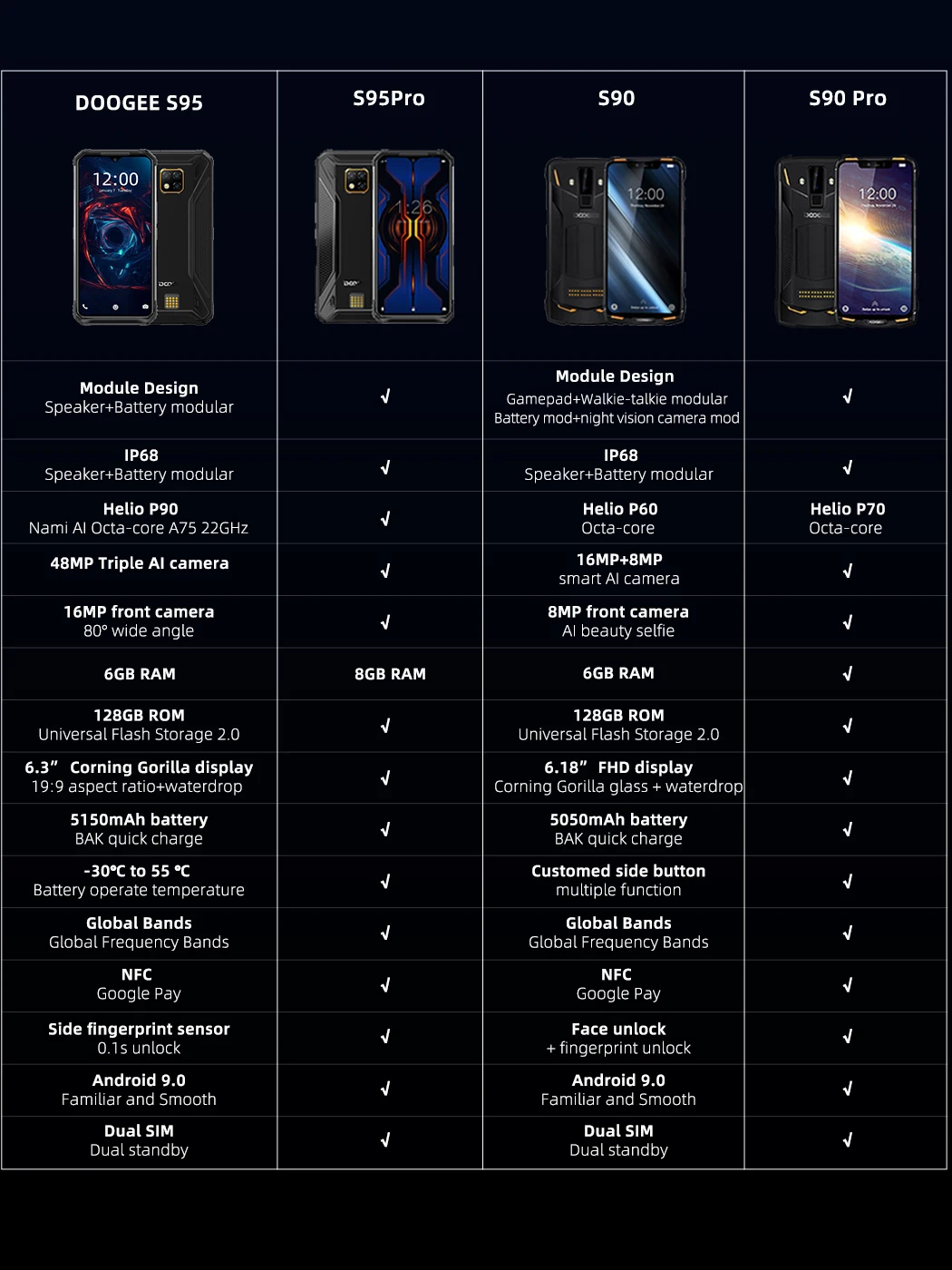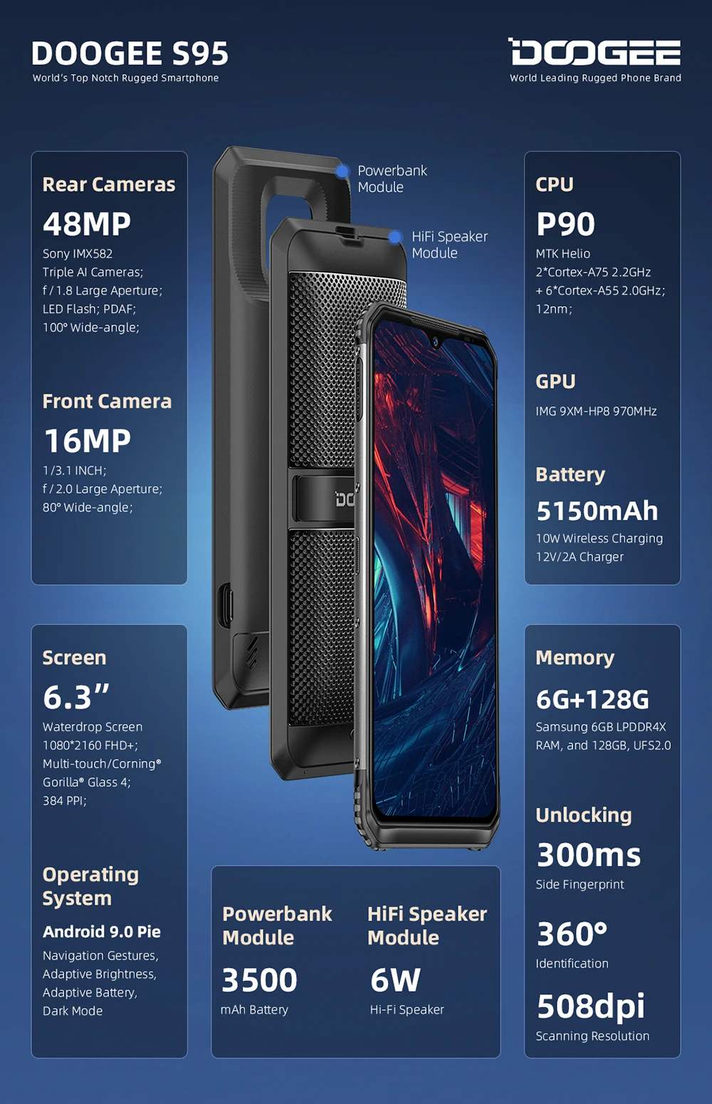 ОС: Android 9,0 Процессор: MTK, Helio P90, 2xCortex-A75, 2,2 ГГц и 6xCortex-A55, 2,0 ГГц Сим-карты:Двойной адаптер для Nano sim-карт Дисплей:6,3 "1080*2160Полноэкранный дисплей Waterdrop FHD +, 19:9 Оперативная память: 6 ГБ/8 ГБ Фронтальная камера:16 МП f/2,0 широкоугольный Встроенная память: 128 ГБ/256 ГБ Автомобильная камера заднего вида: 48,0 МП (SONY IMX582)+ 8,0 МП + 8,0 МП AI Тройная камераБатарея:5150 мАч (встроенный)
