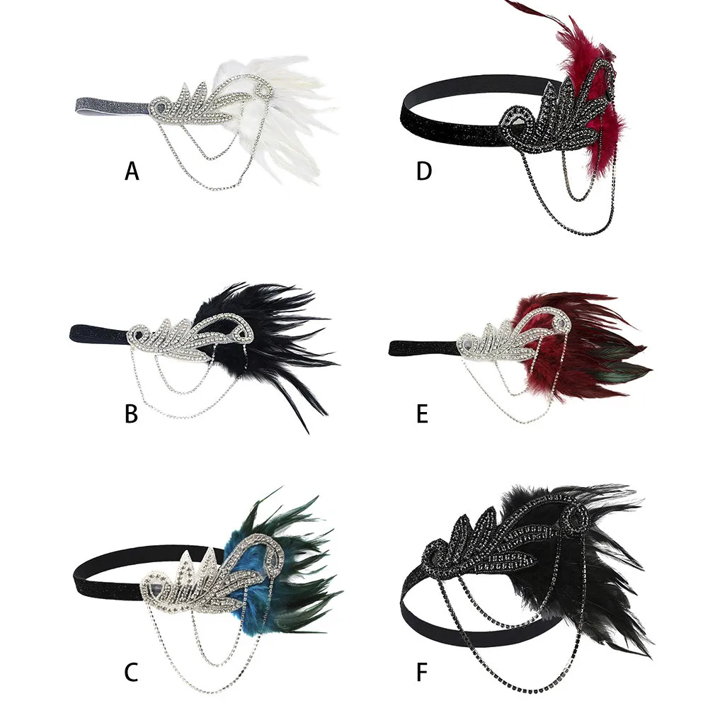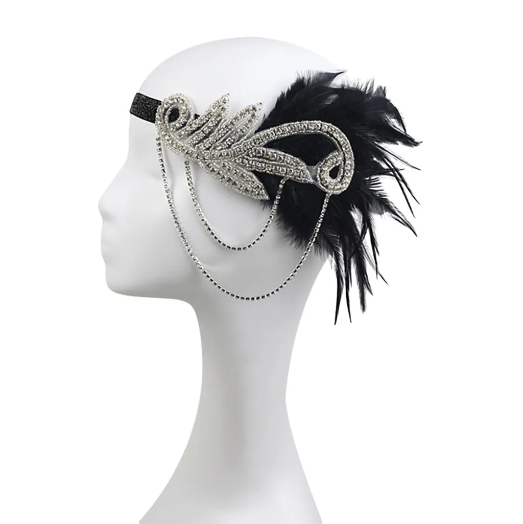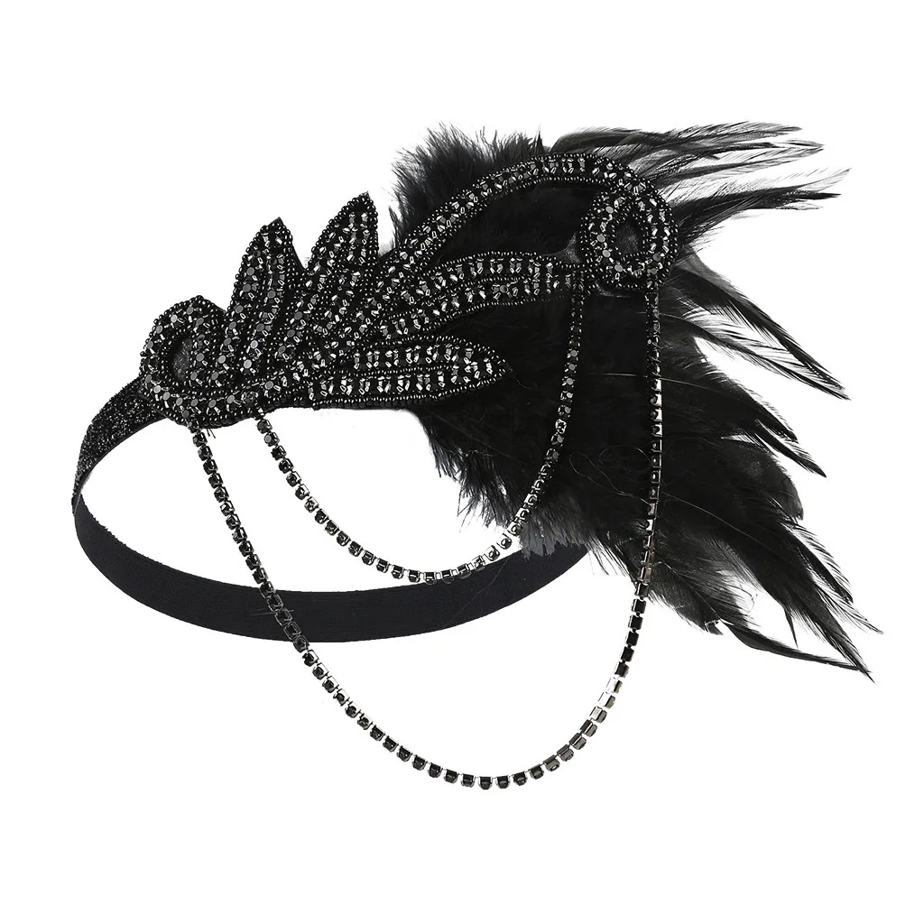Ободок из флопа с перьями, аксессуары с кристаллами 1920s