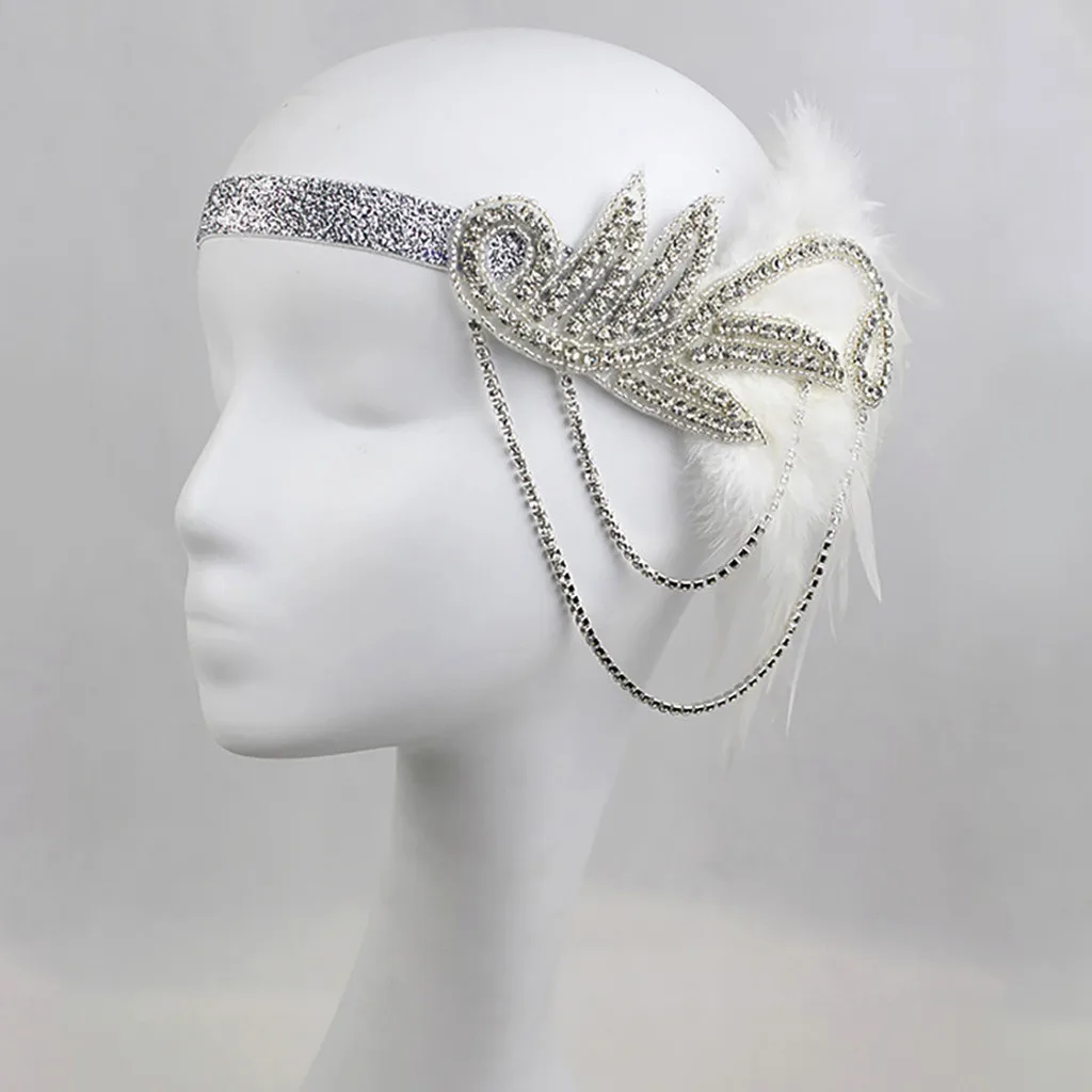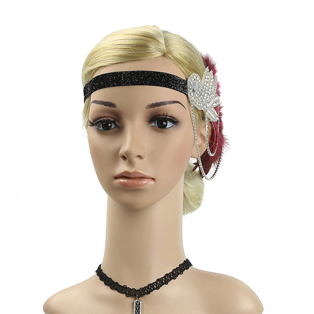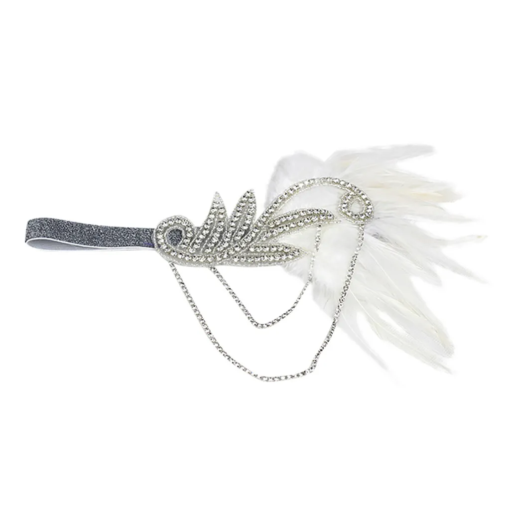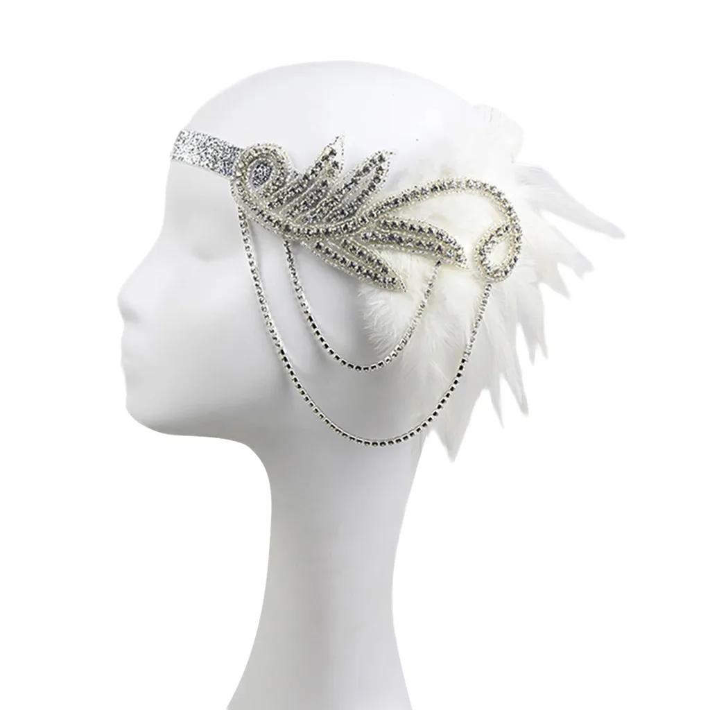 Ободок из флопа с перьями, аксессуары с кристаллами 1920s
