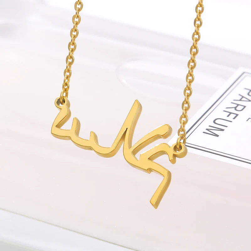 Персонализированные заказное арабское имя ожерелье серебряная с золотом цепь из нержавеющей стали индивидуальные исламские ювелирные изделия для женщин Подарок на годовщину