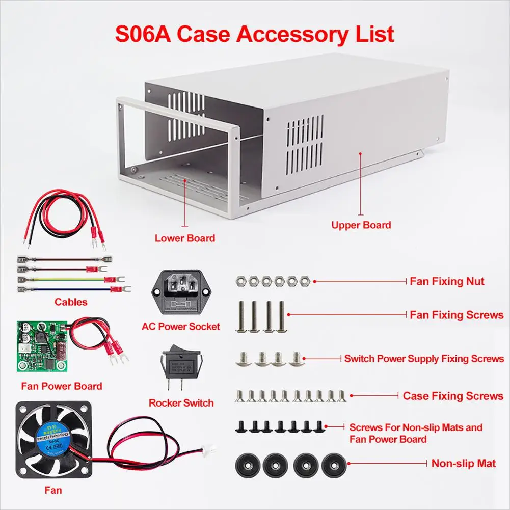 Для корпуса s06a это только один корпус и не содержит никакого источника питания, но он подходит для rd6006, rd6006-w и AC-DC питания 400 Вт 60 В.