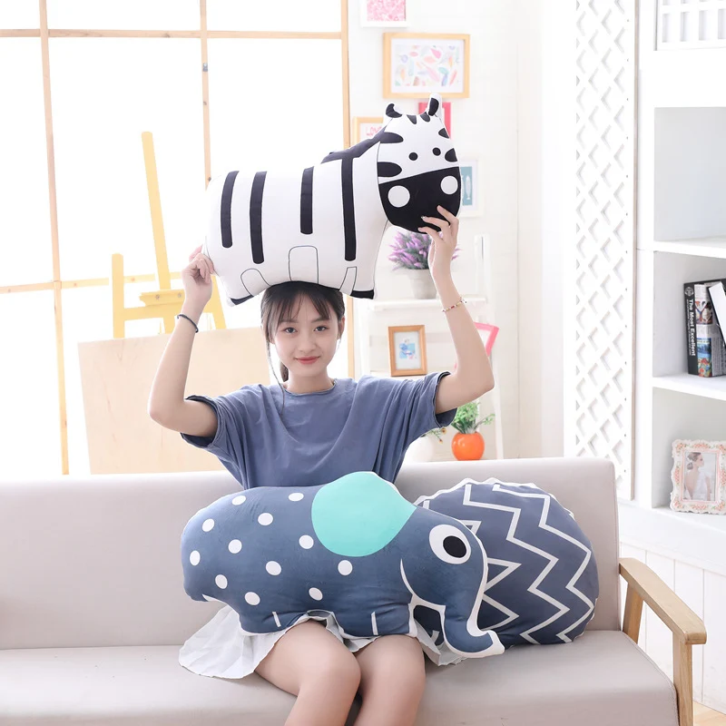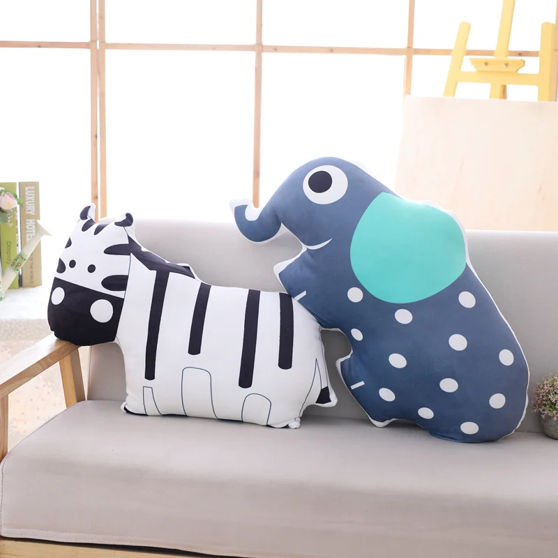 3D печатные Мультяшные плюшевые в форме животного Подушка на заднюю панель мягкая слон медведь Зебра плюшевая подушка украшение дома подарок для детей