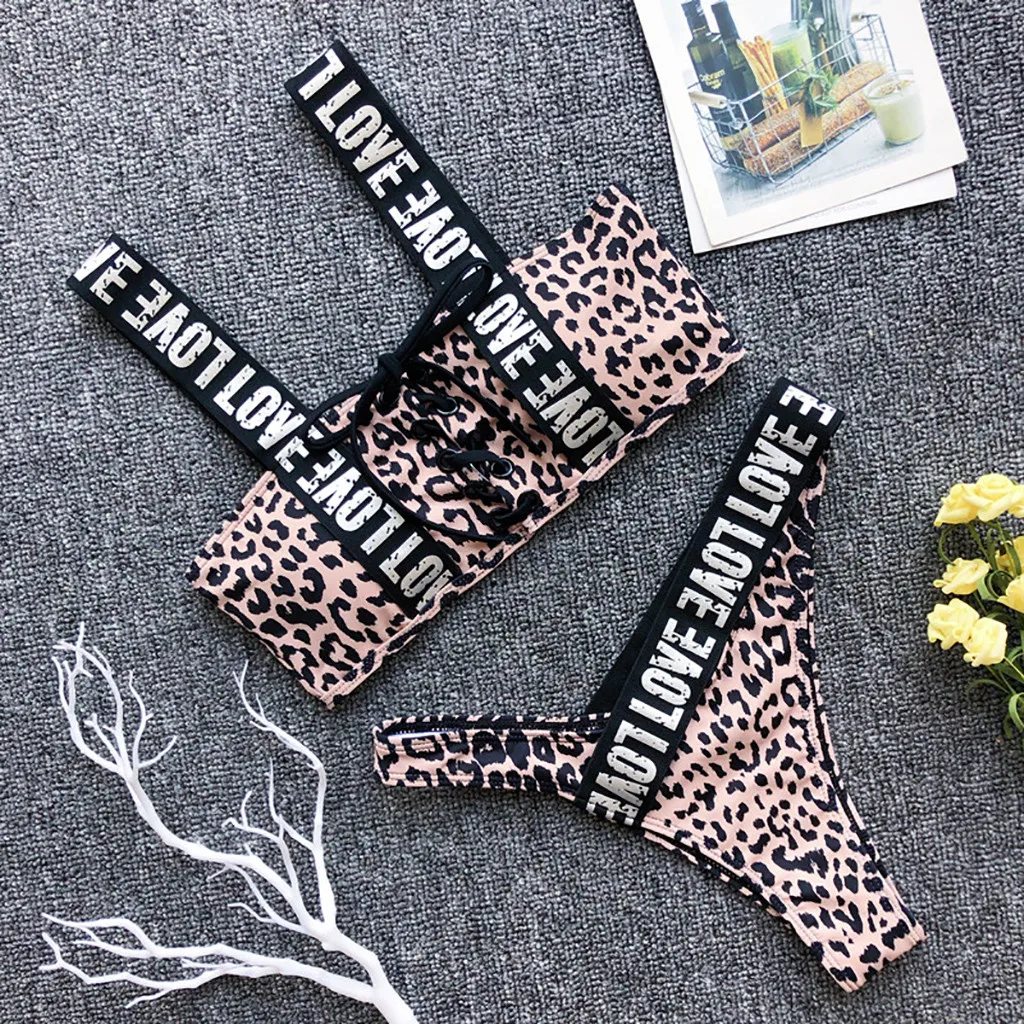 Женский комплект бикини, купальник пуш-ап с мягкой подкладкой, бюстгальтер с буквами, купальник, пляжная одежда