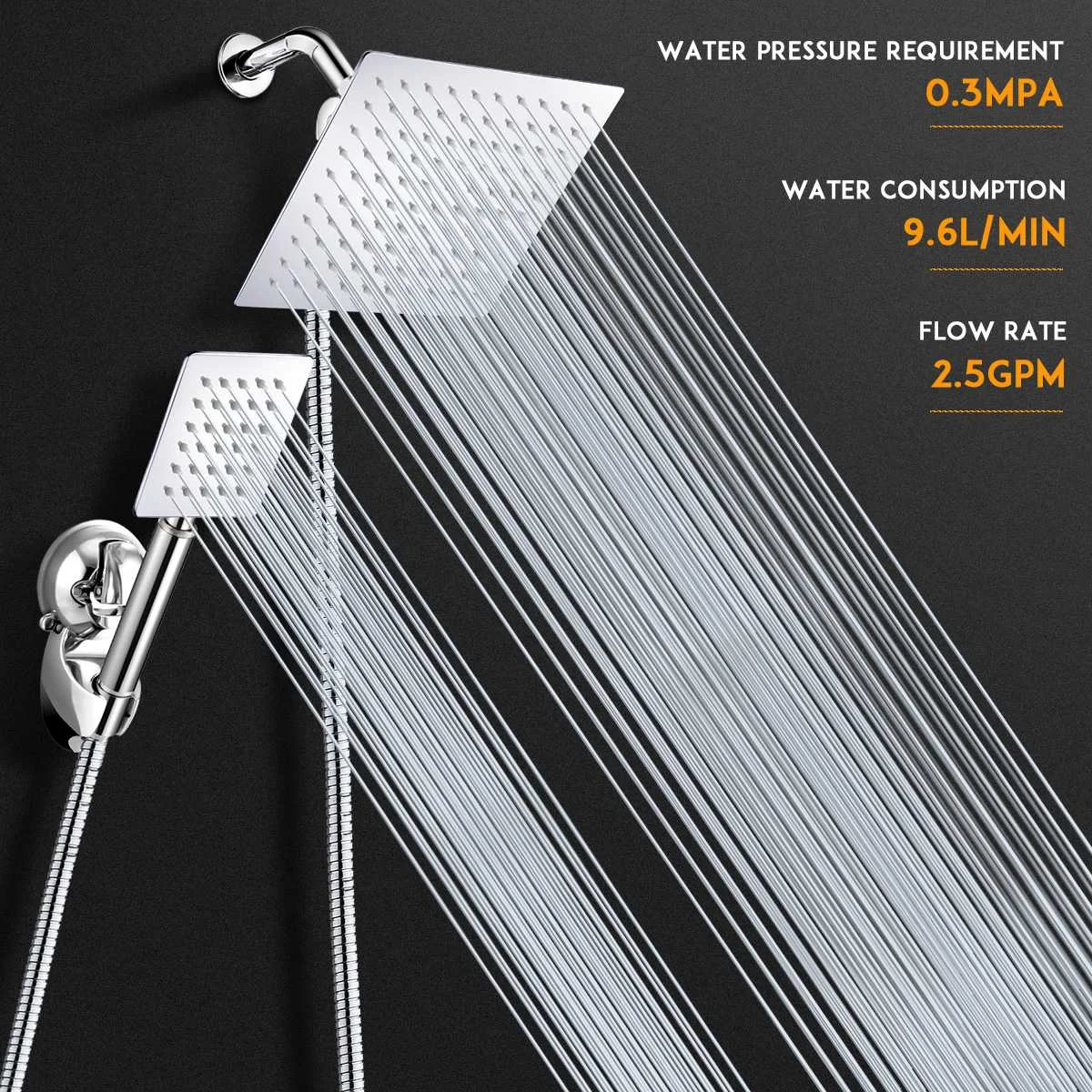 Размер насадки для душа: 7x8 дюймов