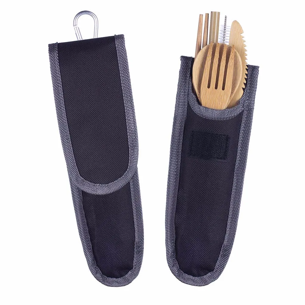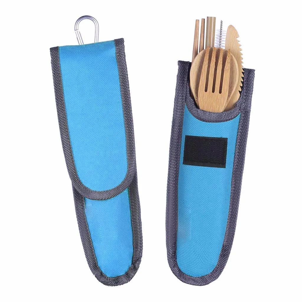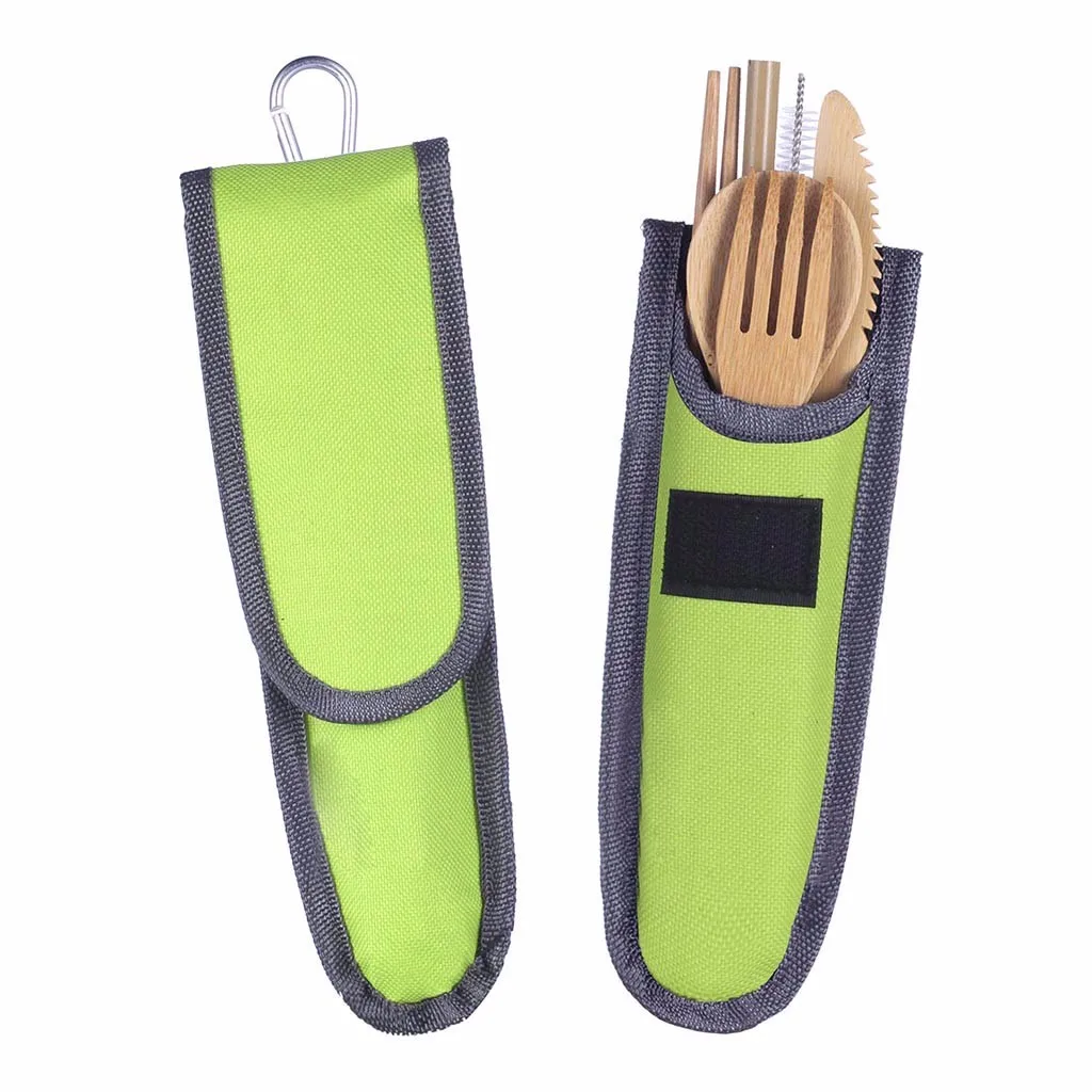Портативный дорожный бамбуковый набор посуды, Походный нож, вилка, ложка, посуда