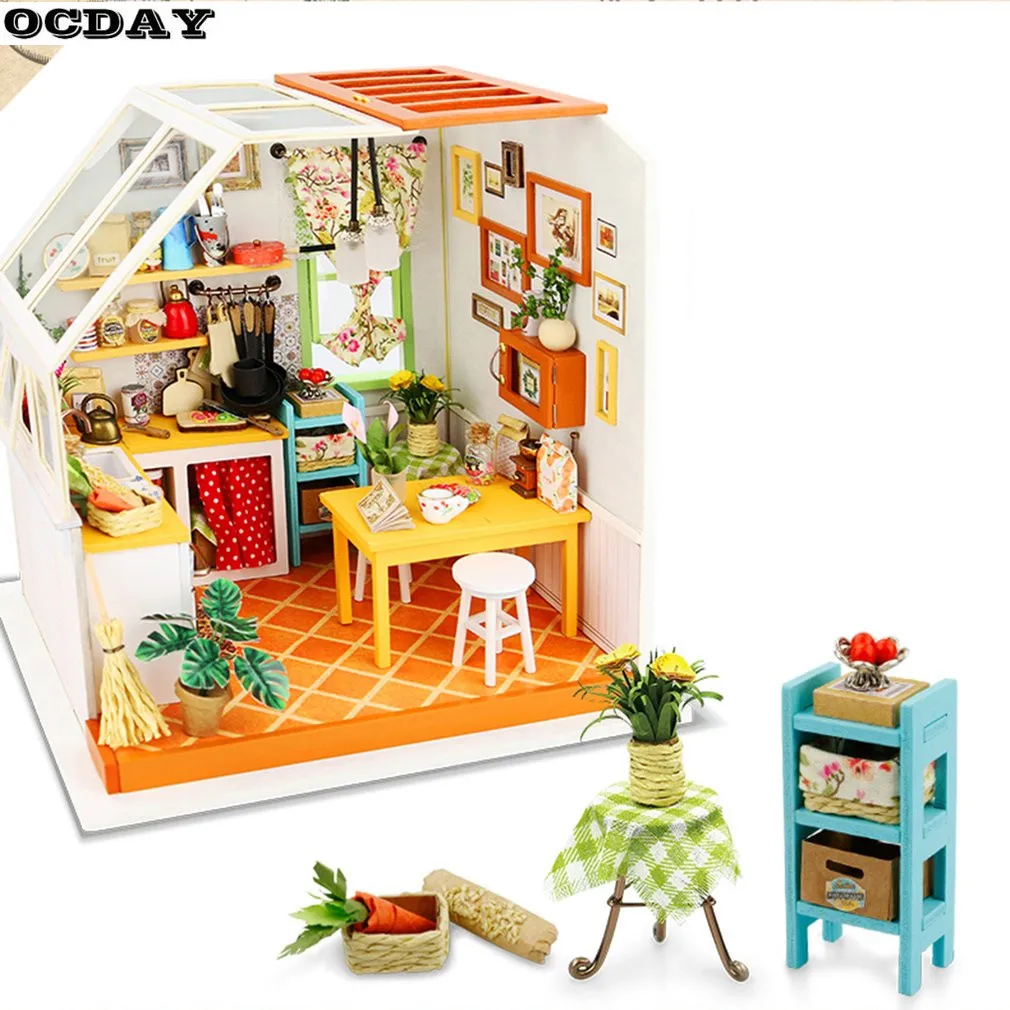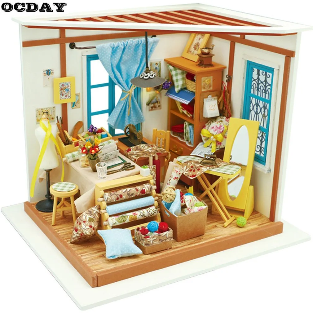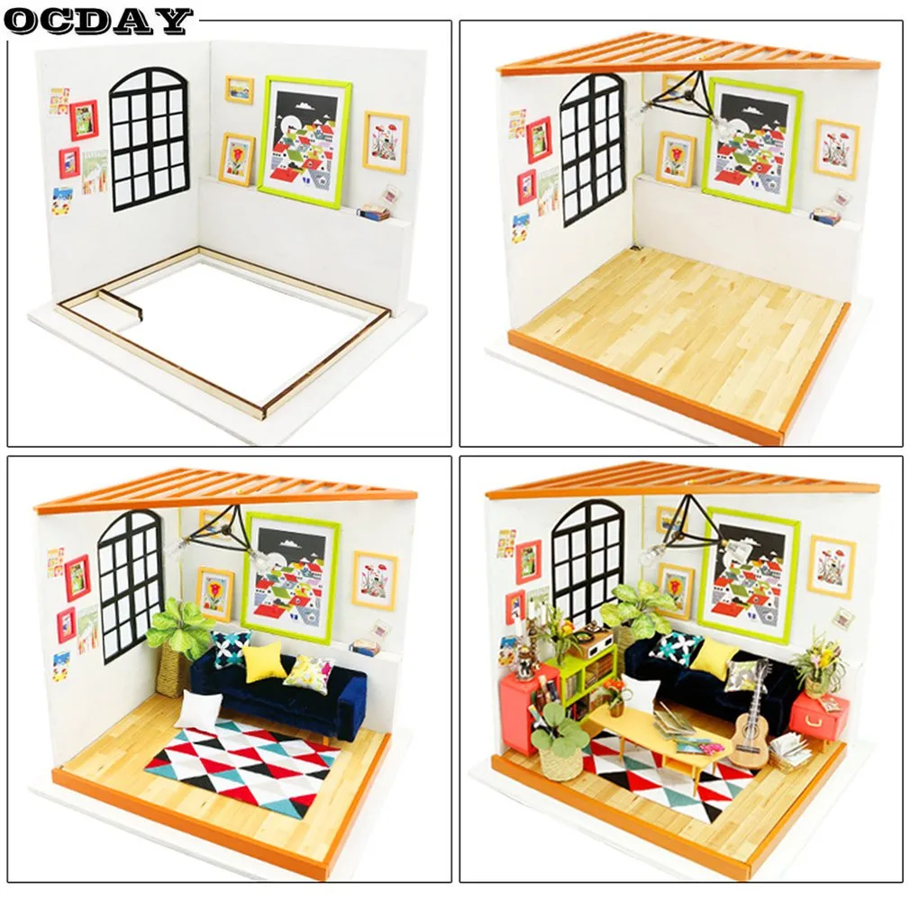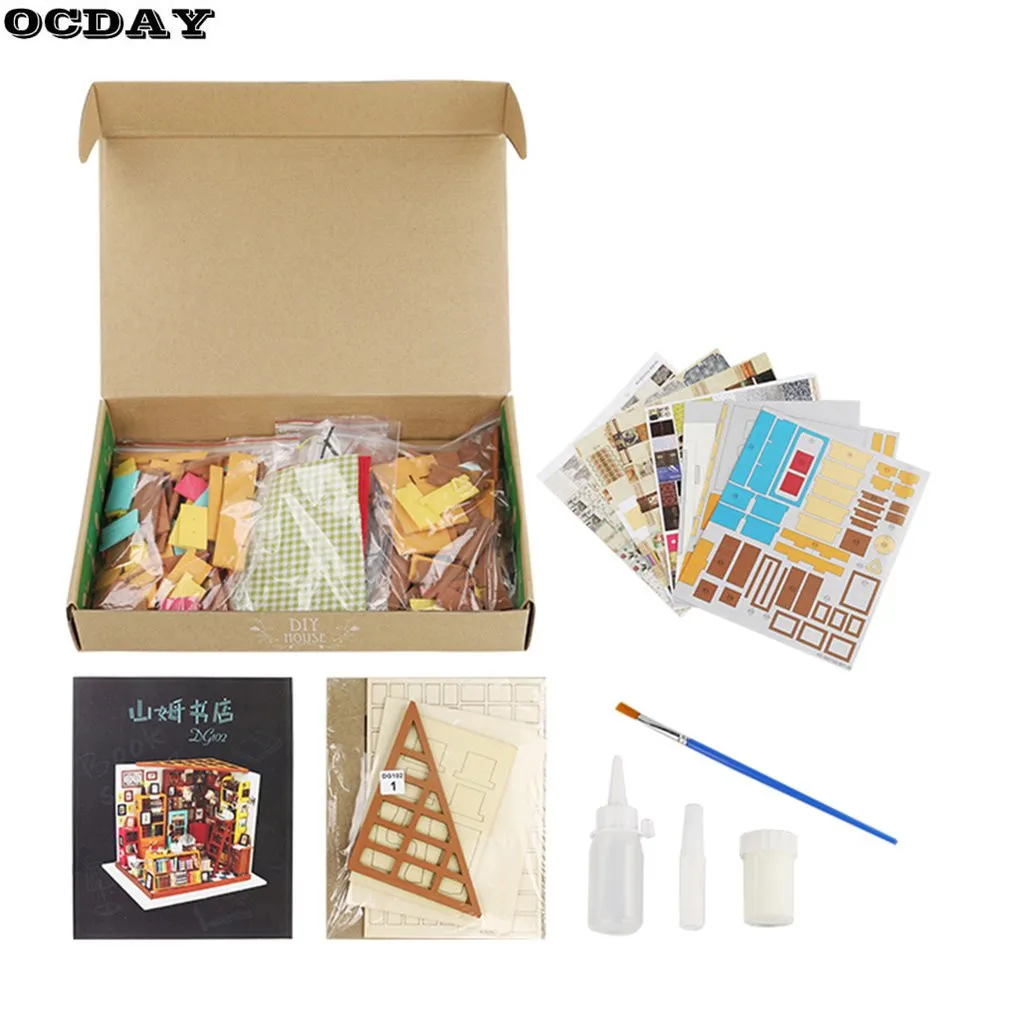 OCDAY 3D DIY деревянные игрушки головоломка Kawaii миниатюрный кукольный домик Строительная модель игрушки чехол ручной работы кукольный дом развивающие Пазлы игрушка для ребенка подарок