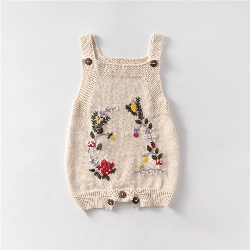 Одежда для новорожденных; Одежда для малышей с вышивкой 2020 весна вязаный детский комбинезон из хлопка для маленьких девочек, Ползунки для новорожденных, для мальчиков, комбинезоны для девочек