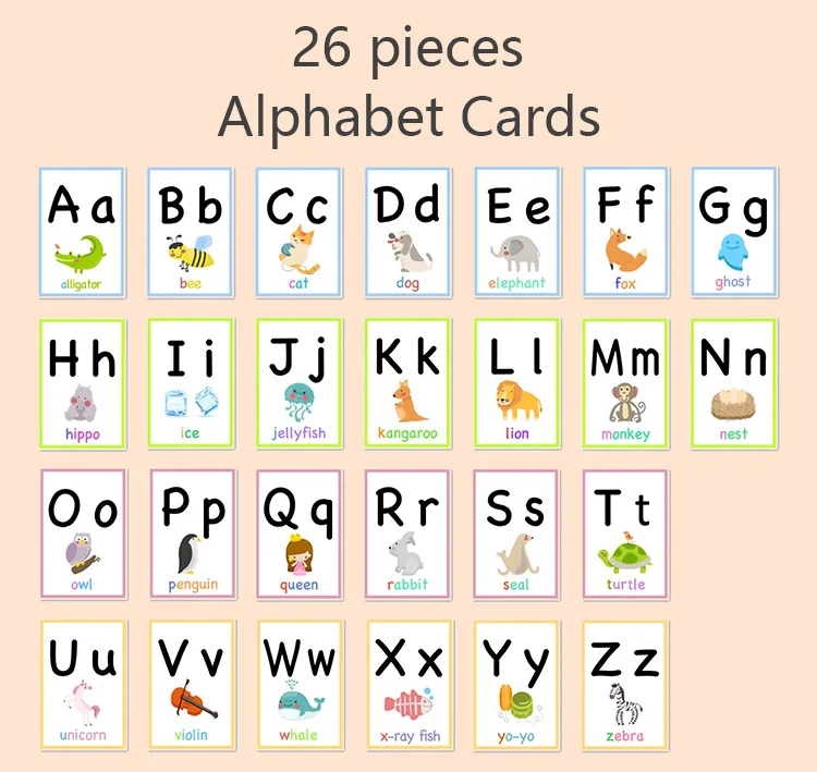 Описание продукта: Название: Английское слово Возраст: > 2 года Материал: двухстороннее защитное пластиковое уплотнение, водонепроницаемое, не складывается и обрабатывается без царапин Узор: Алфавит Размеры: 8 см * 11 см Посылка: 26 шт./компл. Особенности: Милые обучающие средства для обучения английским словам ребенка. Phonics-это безопасный для детей метод обучения, который поступает из англоговорящих англоязычных стран. Phonics-это фонетическая система для детей, обучающая английскому произношению, подходит для детей. Его ядром является установление связи между буквами и звуками. Без помощи Фонетических Символов буквы можно читать непосредственно, чтобы произносить слово, чтобы решить проблему, что слова не могут быть прочитаны и не могут быть написаны. Фотографии: