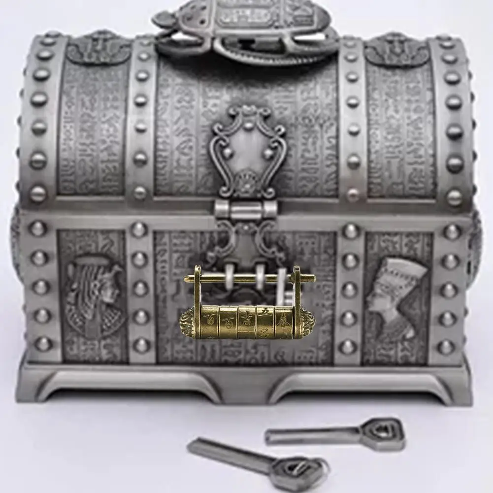 China Retro Text Code Lock Escape Room Antique Decorative Box Lucky Auspicious Five-wheeled Bronze Lettering Password Padlock