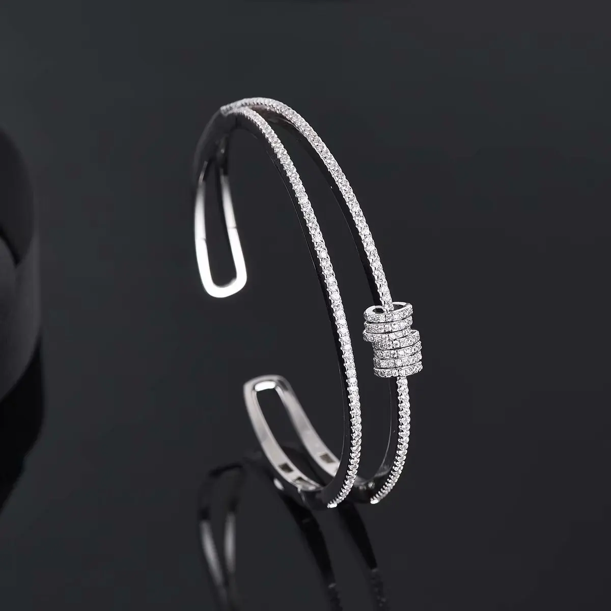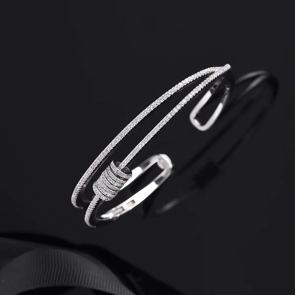 925 серебро Для женщин с двойным рядом камней мульти-браслеты-кольца