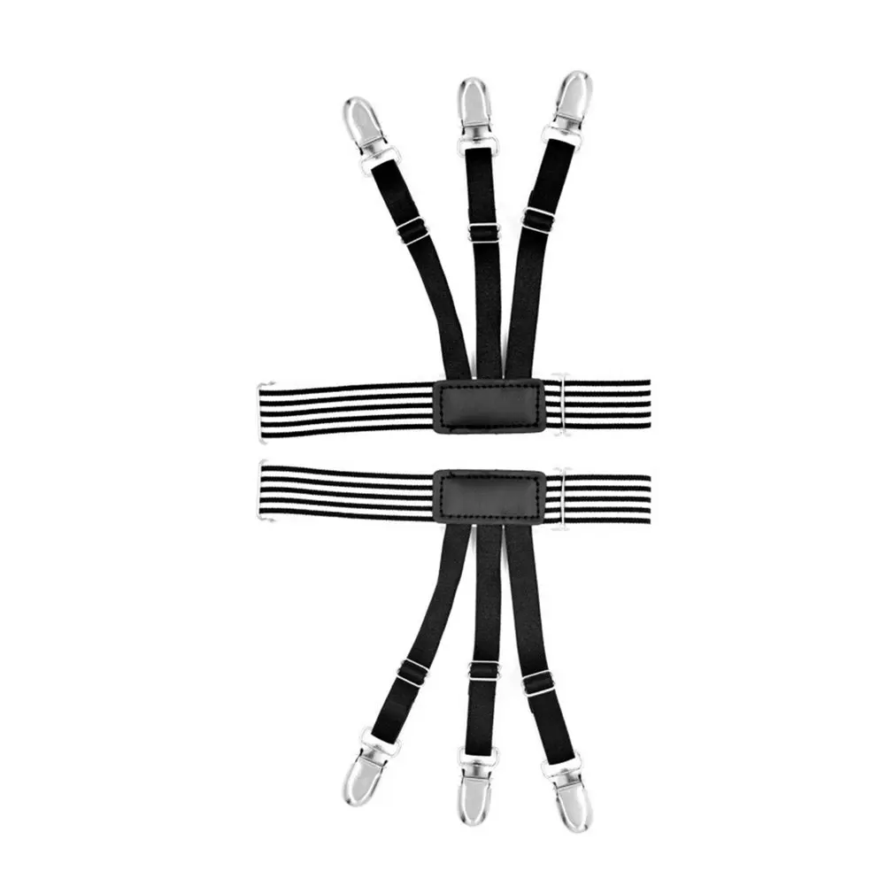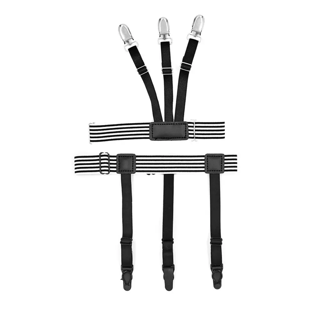 Легко использовать, Просто прикрепите двойные зажимы к хвосту рубашки, а петля скользит по каждой ноге.
