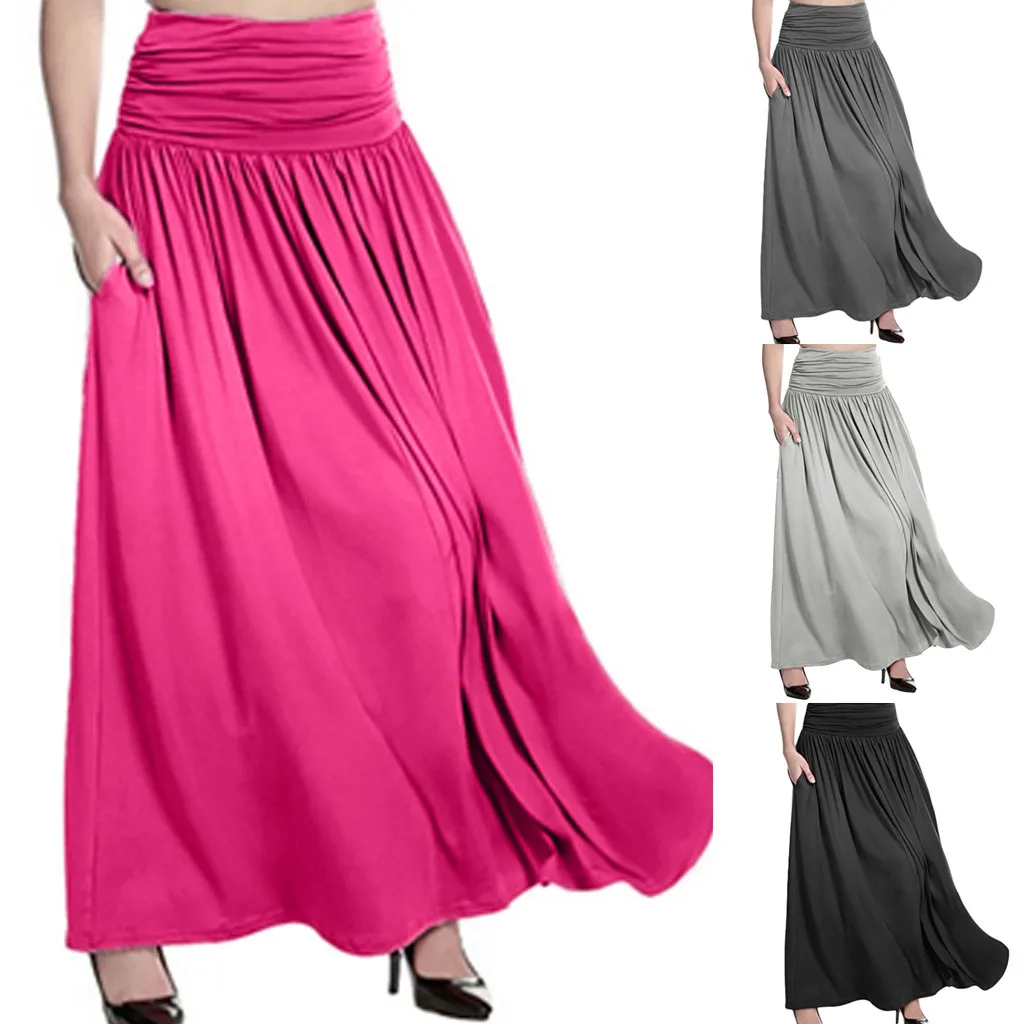 Женская юбка макси с высокой талией, Повседневная Длинная юбка цыганского размера плюс